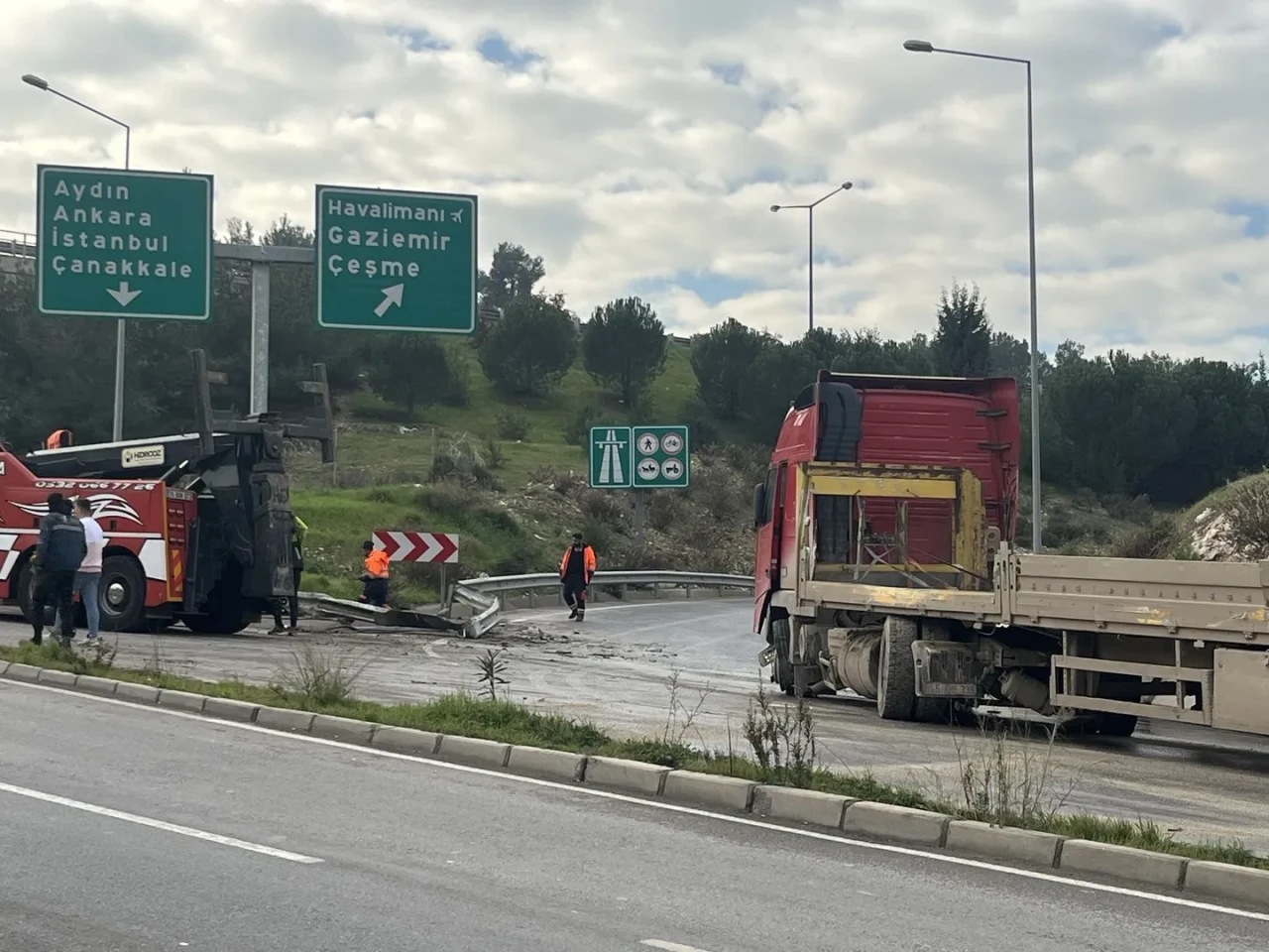 Olay, İzmir Çevre Yolu Buca Batı girişi civarında saat 10.00 sıralarında meydana geldi. Tır, viraja hızlı girerek kontrolünü kaybetti ve hem bariyerleri hem de orta refüjü yıktı.