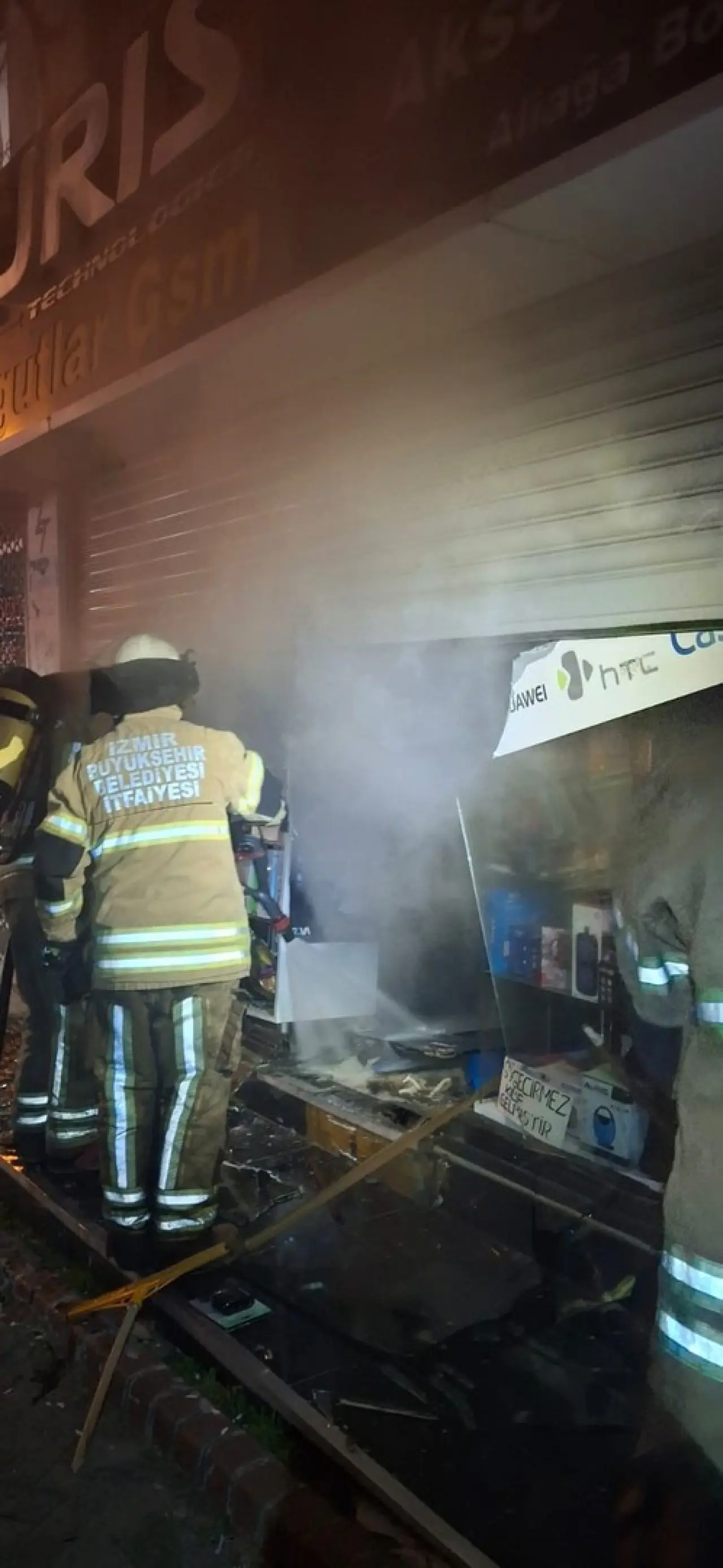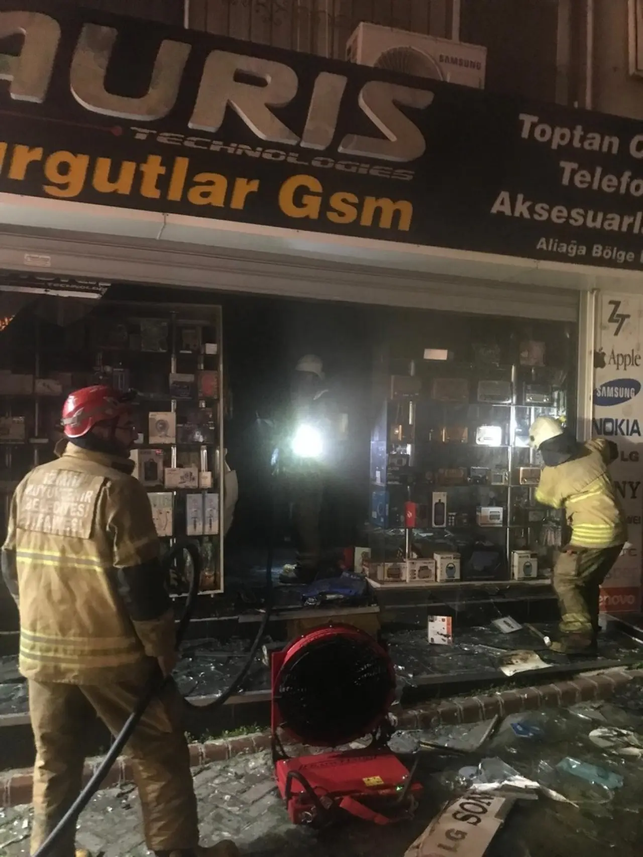 İzmir'in Aliağa ilçesinde gece saatlerinde bir cep telefonu aksesuar mağazasında yangın çıktı. İtfaiye ekipleri yangını kontrol altına alarak söndürdü.