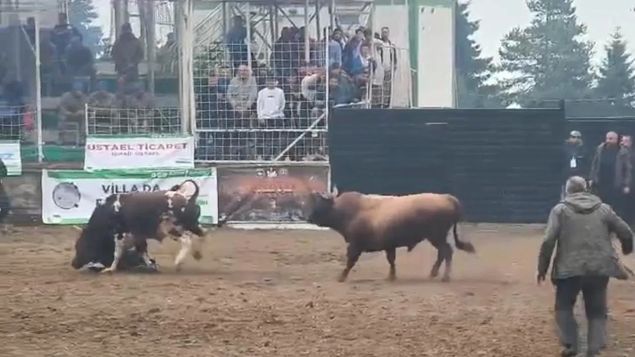 Ayak kategorisindeki güreşlerde Kılıç 420 isimli boğa kontrolden çıktı. Rakibinden kaçarken bakıcısını boynuzlayarak tehlikeli anlara neden oldu.