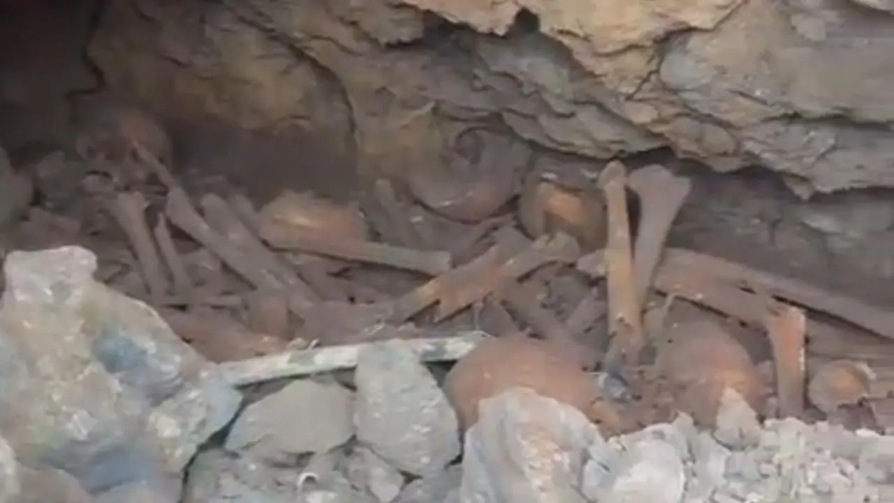 Kayanın kaldırılmasıyla mağara benzeri bir alan ortaya çıktı. İçeride çok sayıda insan kafatası ve kemik kalıntıları tespit edildi.