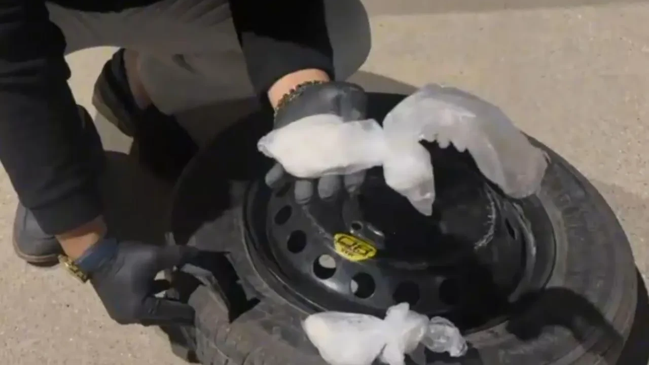 Narkotik köpeğiyle yapılan aramada stepne içinde 288,86 gram metamfetamin bulundu. Şüpheliler emniyetteki işlemlerin ardından tutuklandı.
