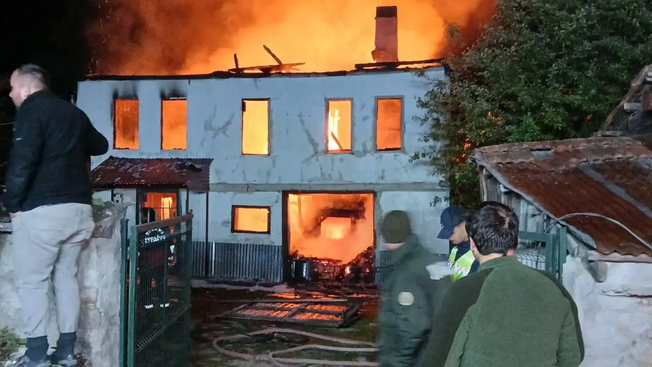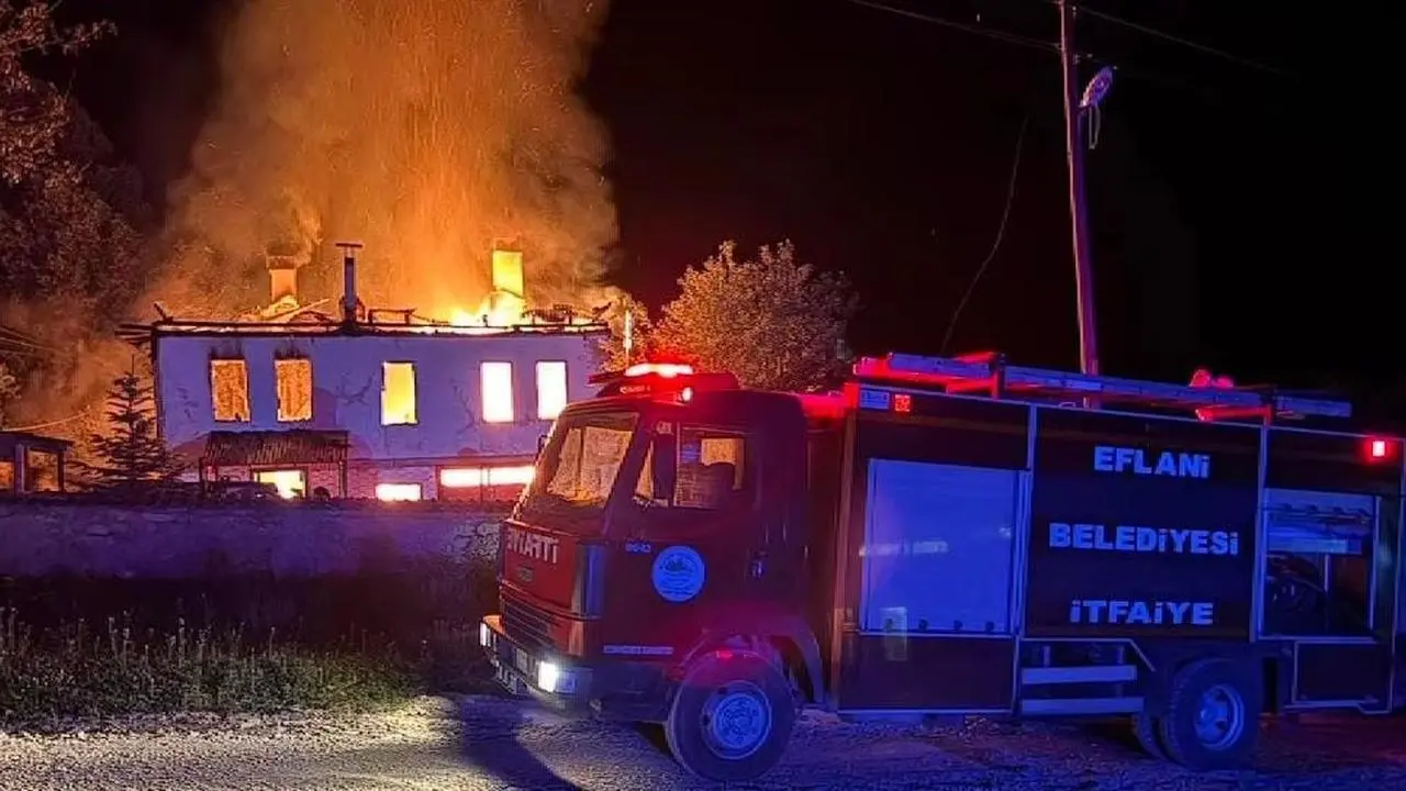 Karabük'ün Eflani ilçesinde çıkan yangında iki katlı müstakil ev tamamen yanarak kullanılamaz hale geldi.