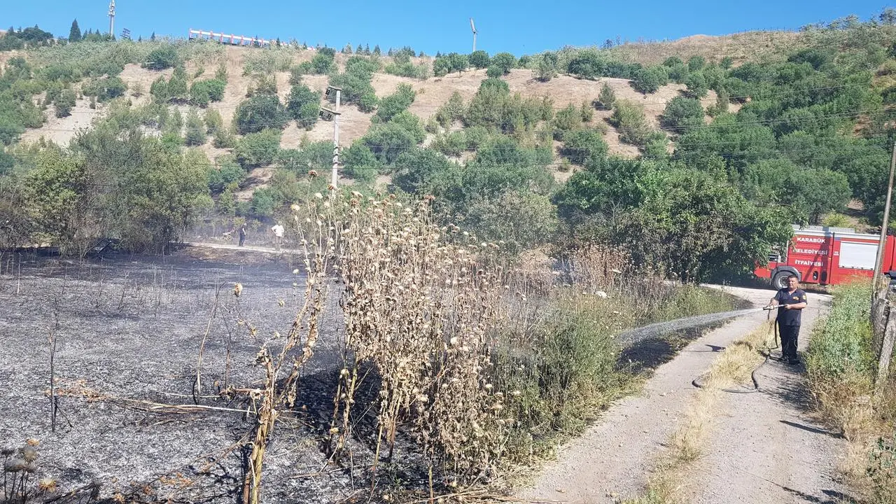 Karabük'teki sera bölgesinde çıkan anız yangını ekiplerin müdahalesiyle kontrol altına alındı, 6 dönüm alan zarar gördü.
