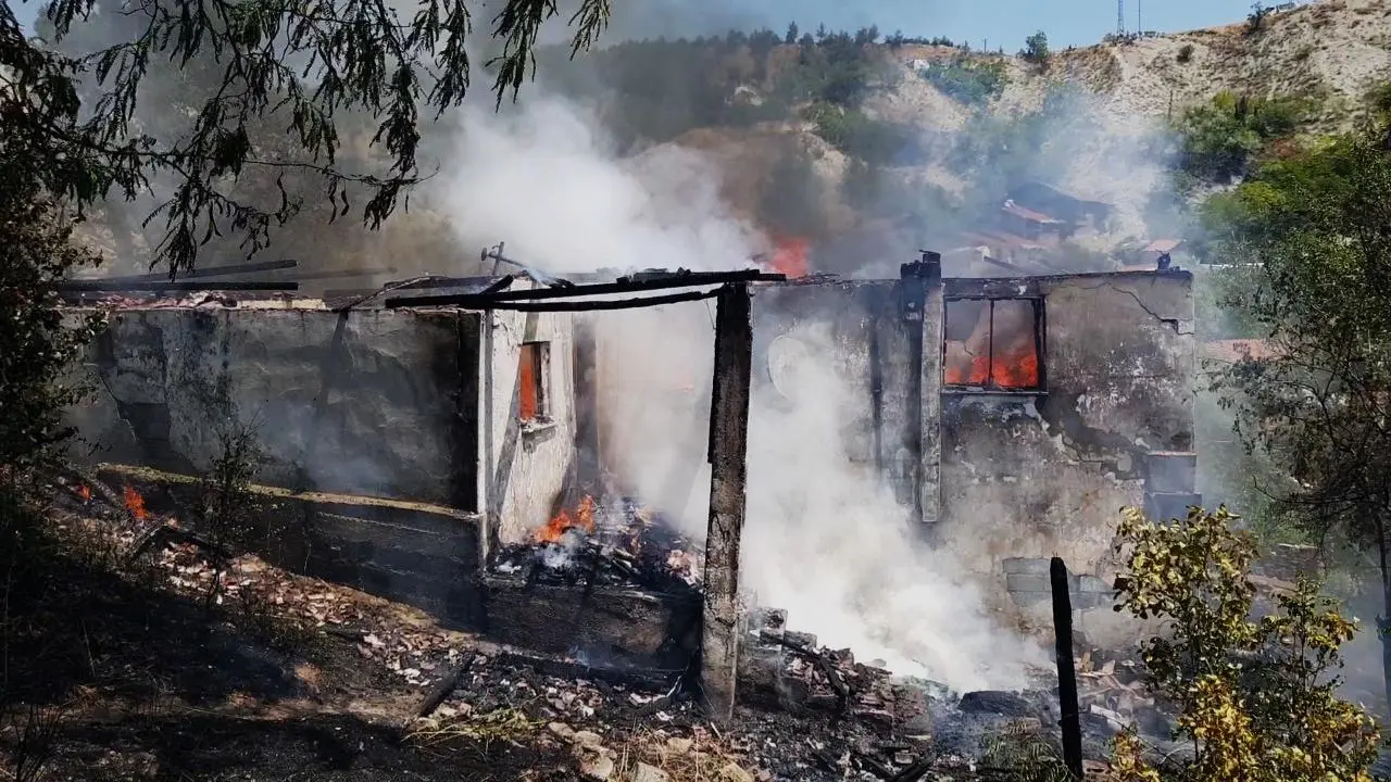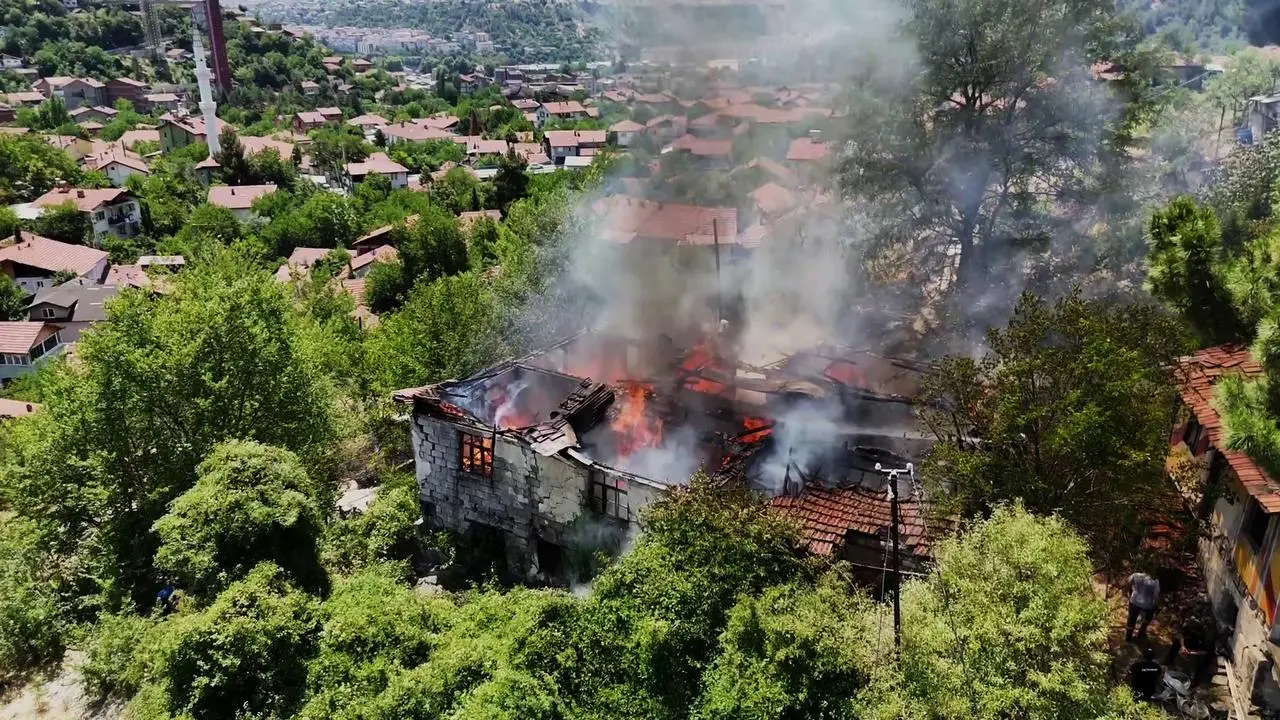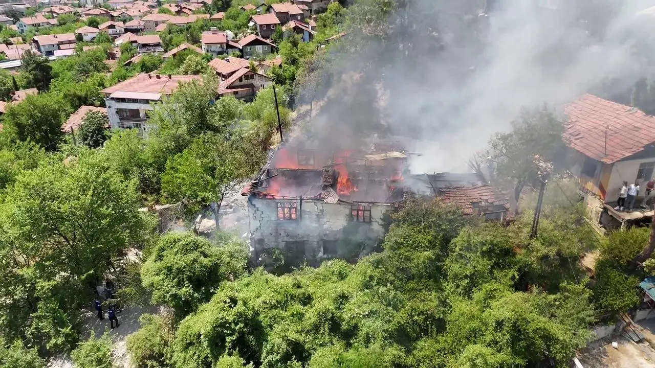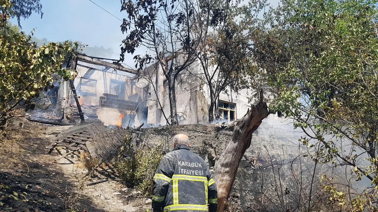 Karabük'te otluk alanda çıkan yangın, iki katlı bir evi tamamen yok etti.