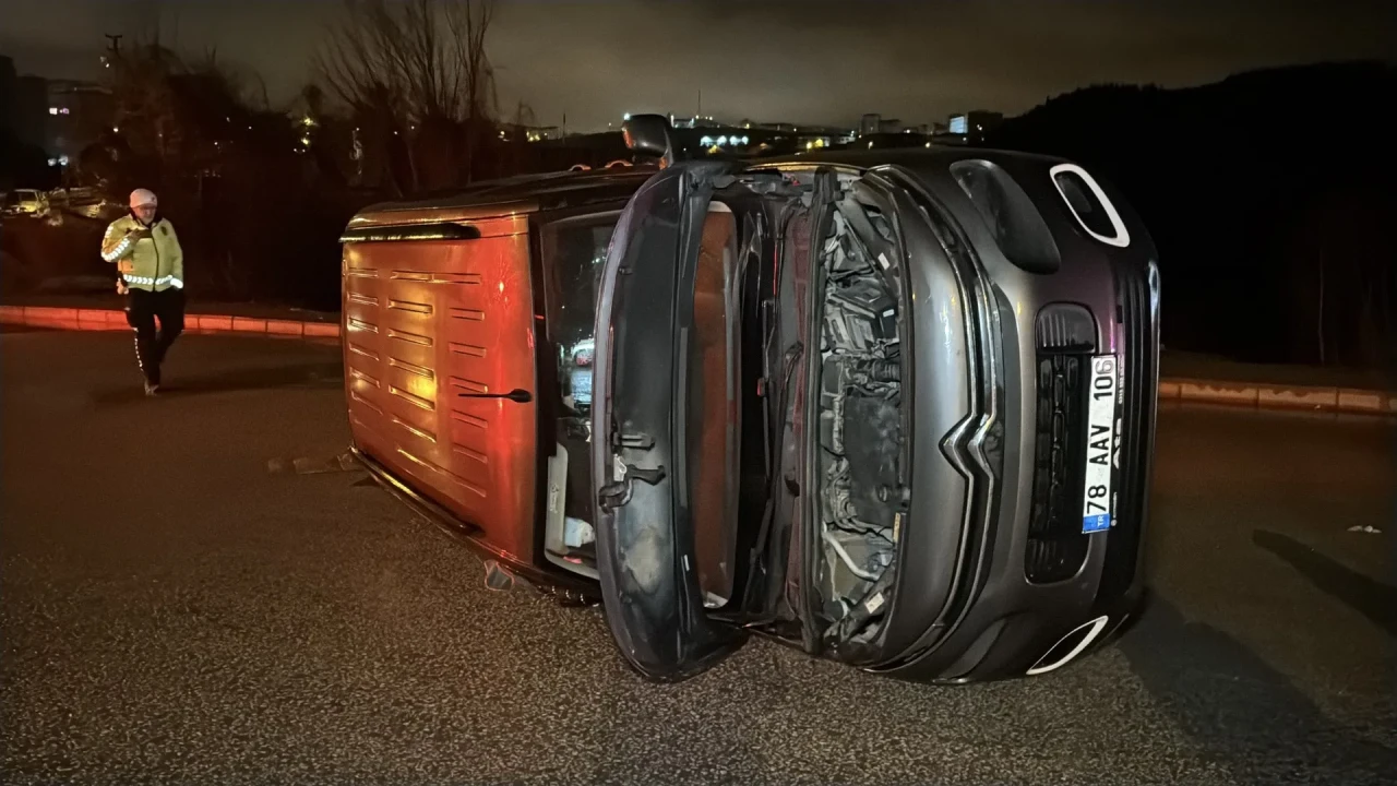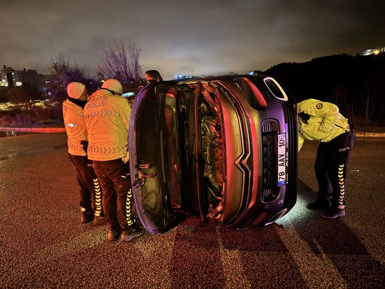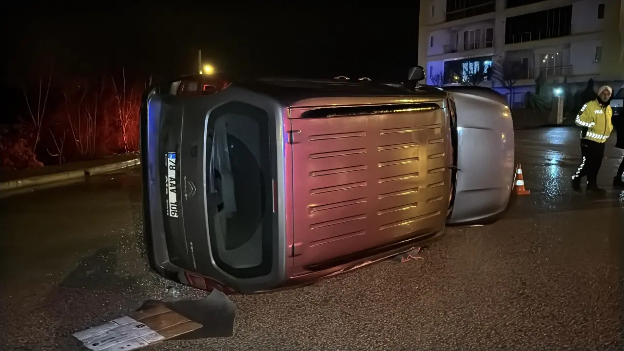 Karabük'te meydana gelen trafik kazasında bir araç kaldırıma çarpıp devrildi ve bir kişi yaralandı.
