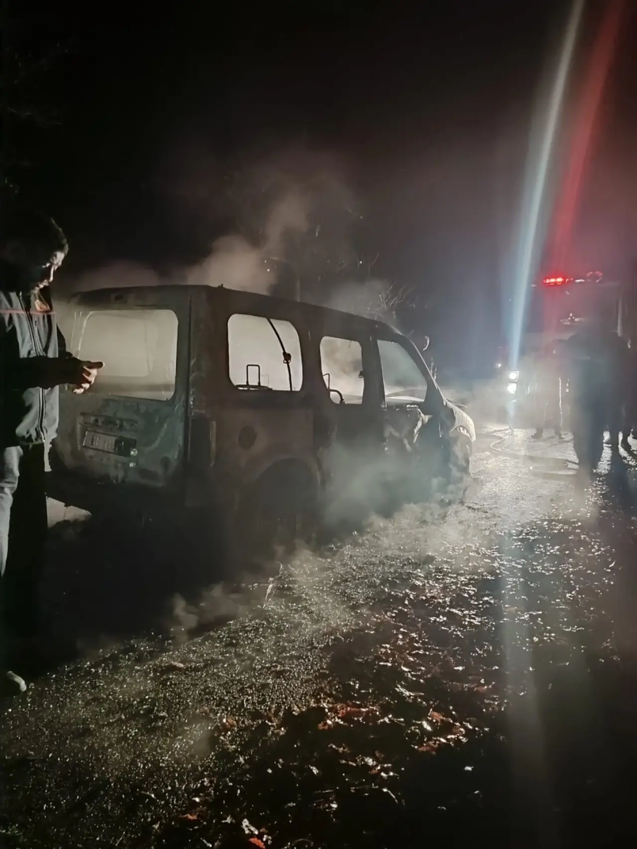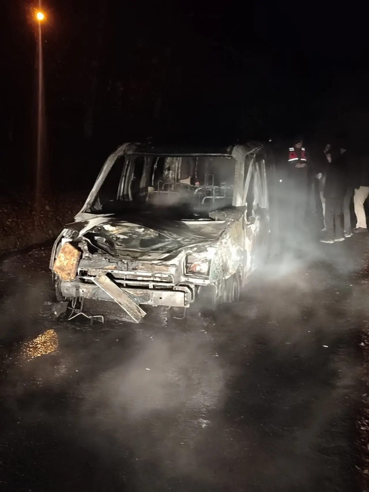Olay yerine gelen itfaiye ve jandarma ekiplerinin müdahalesiyle yangın kontrol altına alındı. Araç ise tamamen yanarak demir yığınına dönüştü.
