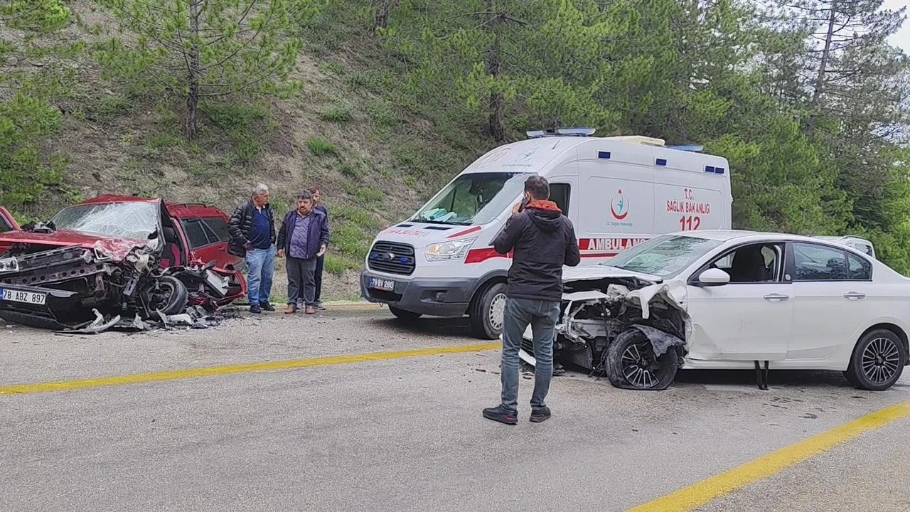 Bartın karayolunda meydana gelen feci kazada iki otomobilin çarpışması sonucu biri çocuk sekiz kişi yaralandı.