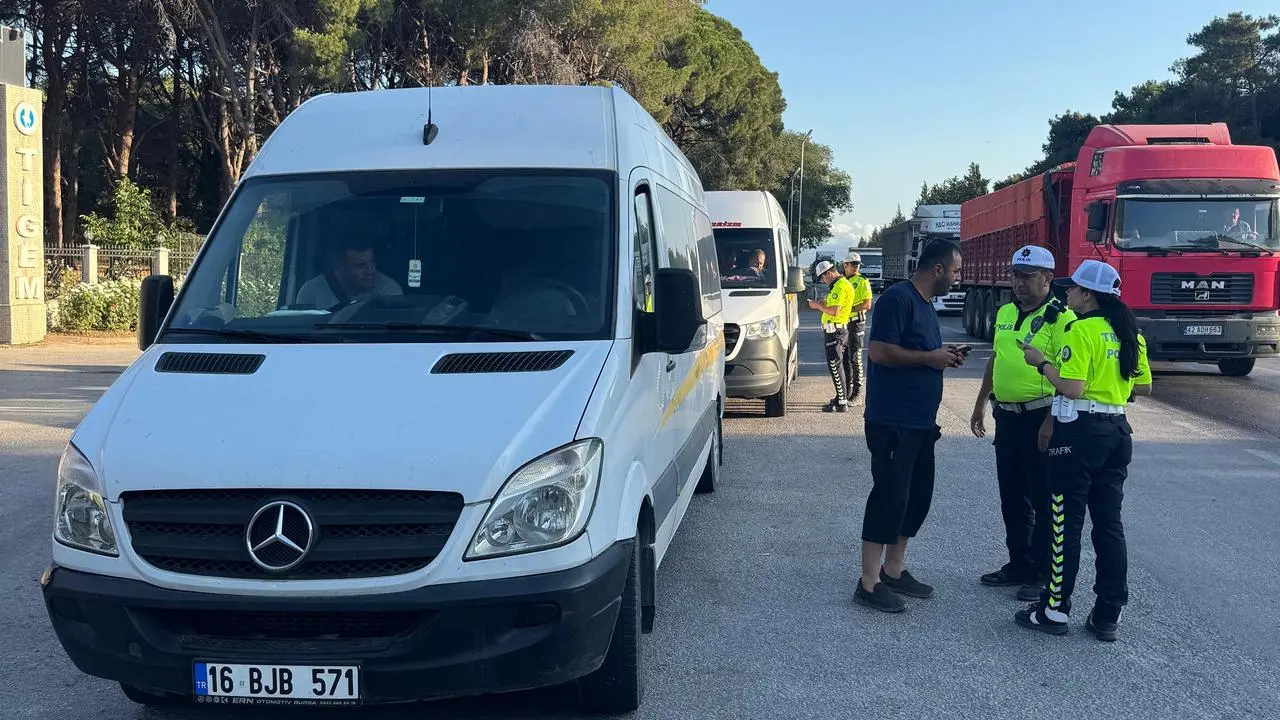 Karacabey'de servis araçlarına yönelik yoğun denetimler yapıldı, 20 servise ceza uygulandı.
