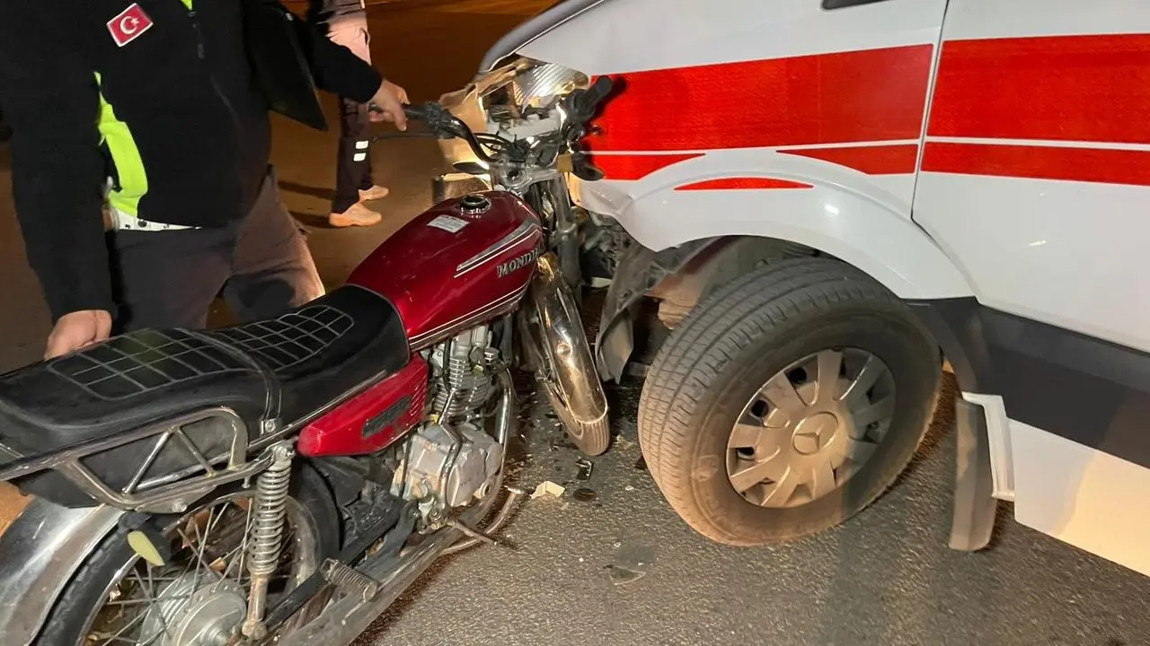 Çarpışma akşam saatlerinde İmaret Mahallesi'ndeki kavşakta meydana geldi. Ambulansın ön kısmına saplanan motosiklet sürücüsü yolda savruldu.