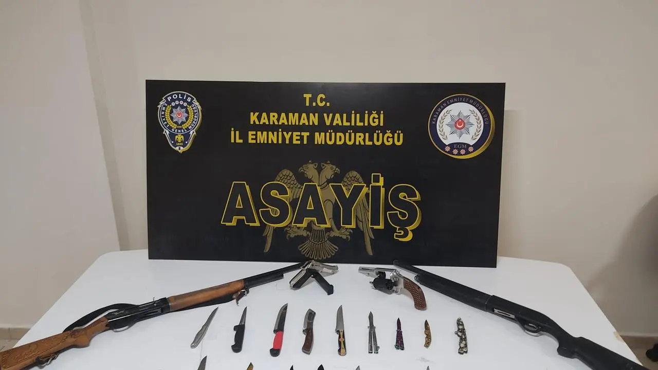 Karaman'da polis, yaptığı asayiş uygulamalarında uyuşturucu ve ruhsatsız silahlarla birlikte çeşitli suçlardan aranan kişileri yakaladı.