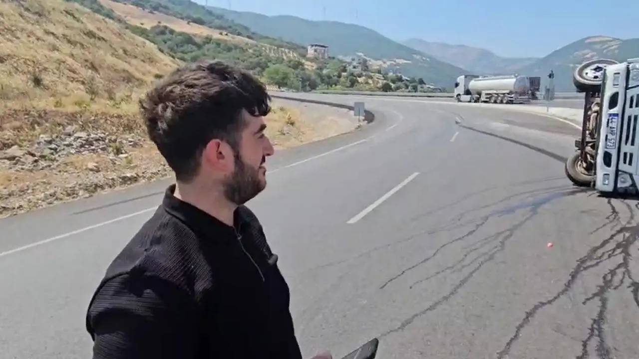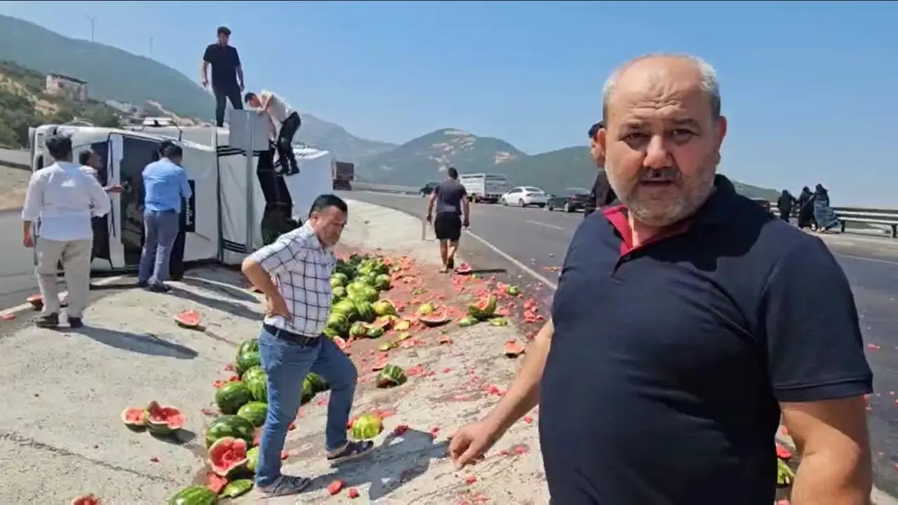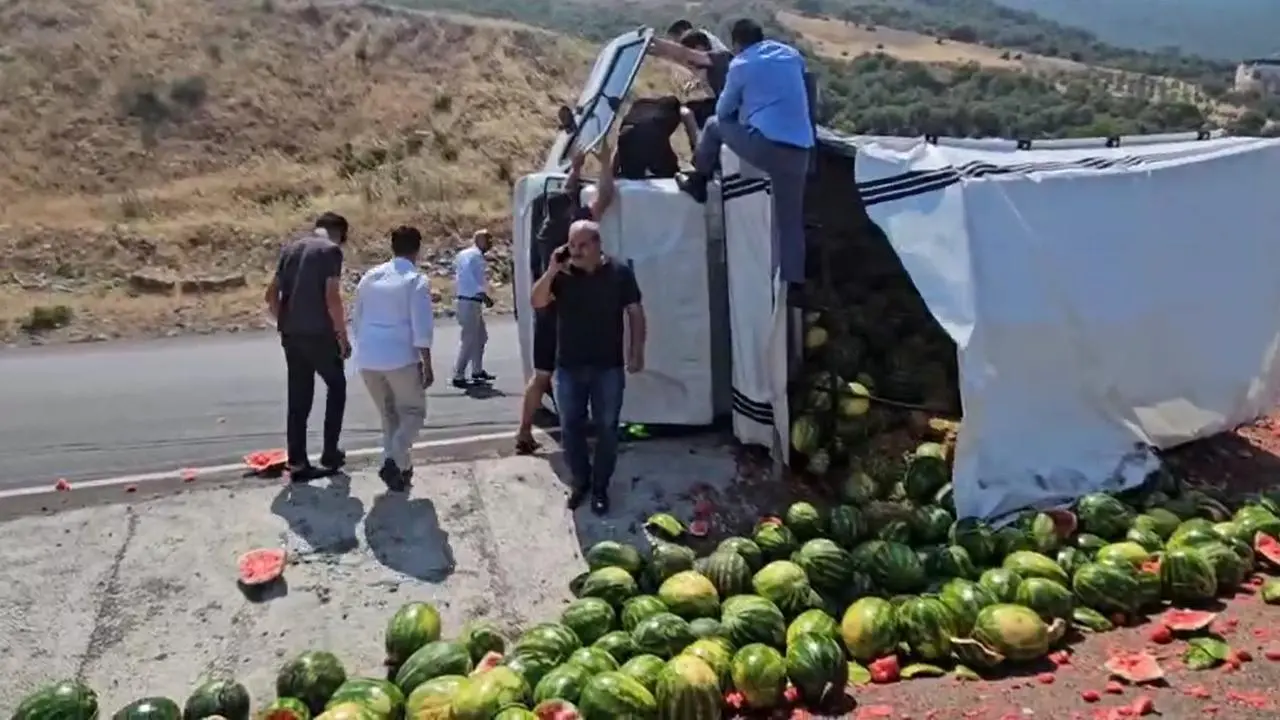 Mustafa Çelik'in kullandığı 44 OHP 573 plakalı kamyonet, keskin virajda kontrolden çıktı. Araç yan yatarken içindeki karpuzlar etrafa saçıldı.