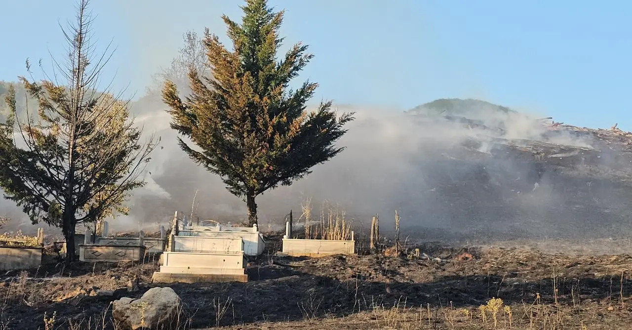 Akşam saatlerinde soğutma çalışmaları sürerken yangın yeniden alevlendi. Mezarlık yakınındaki ağaçlara sıçrayan yangın kısa sürede geniş bir alana yayıldı.
