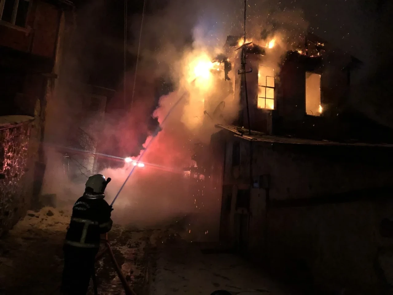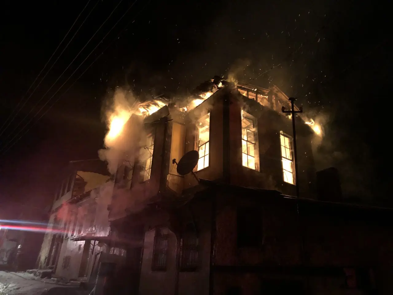 Akmescit Mahallesi'ndeki yangın, bilinmeyen bir nedenle başladı ve hızla yayıldı. İtfaiyenin müdahalesiyle kontrol altına alınan yangında konak kullanılamaz hale geldi.