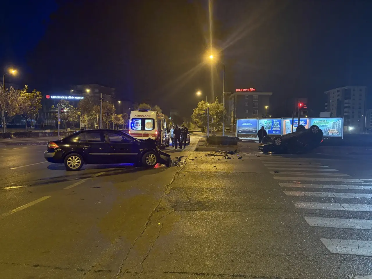 Ahmet Gazi Ayhan Bulvarı'nda meydana gelen kazada, 38 AFH 433 plakalı araç ile 38 AOT 253 plakalı araç çarpıştı. Çarpışmanın şiddetiyle 38 AFH 433 plakalı araç takla atarak hasar gördü.