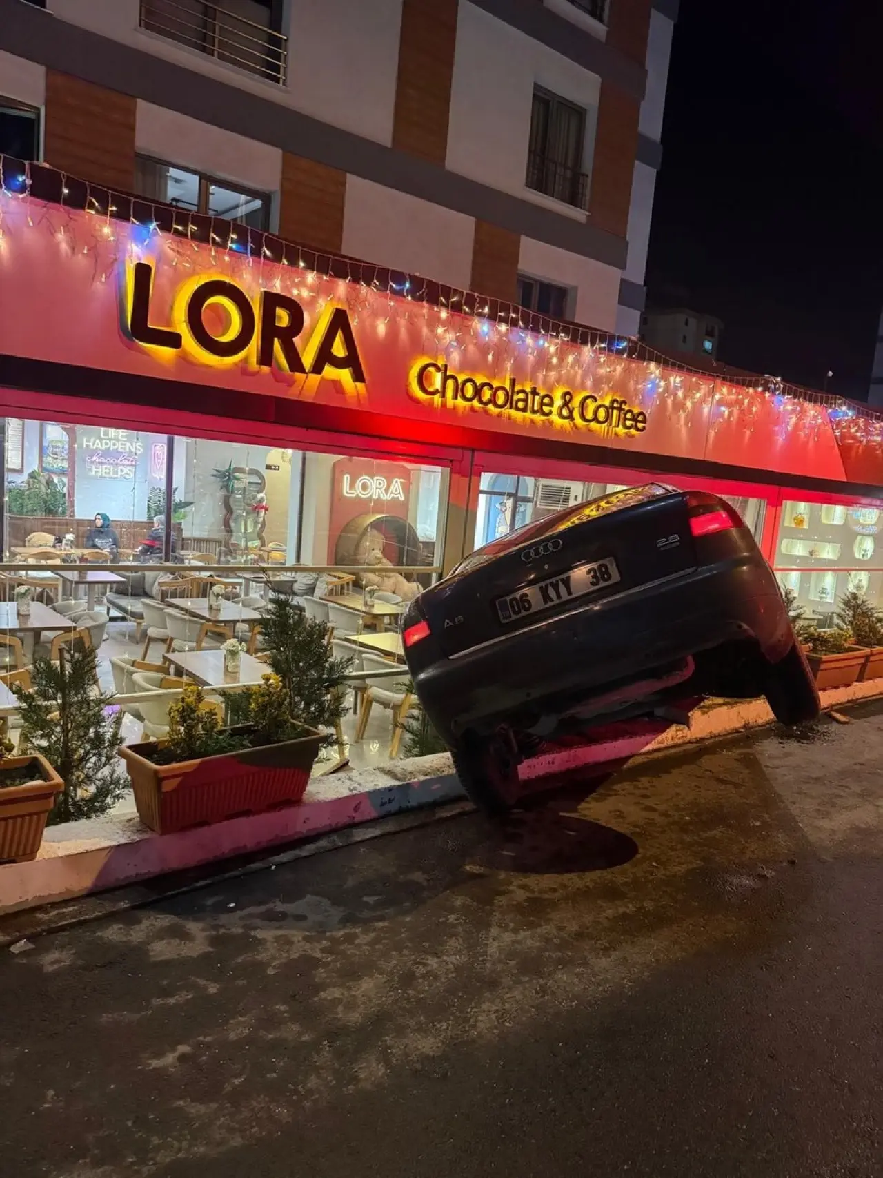 Güvenlik kamerası görüntülerinde otomobilin kafeteryaya girmeden önceki anlar kaydedildi. İki müşteri oturacakları masadan saniyeler önce ayrıldı.