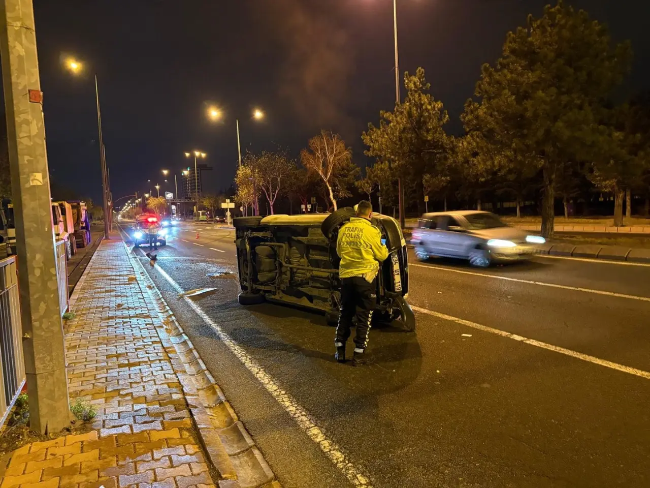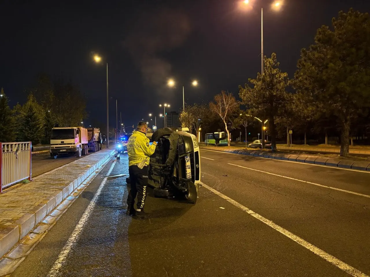 Melikgazi ilçesinde meydana gelen kazada T.M. yönetimindeki araç kontrolden çıktı. Talas Bulvarı'nda yan yatan araç trafiği kilitledi.