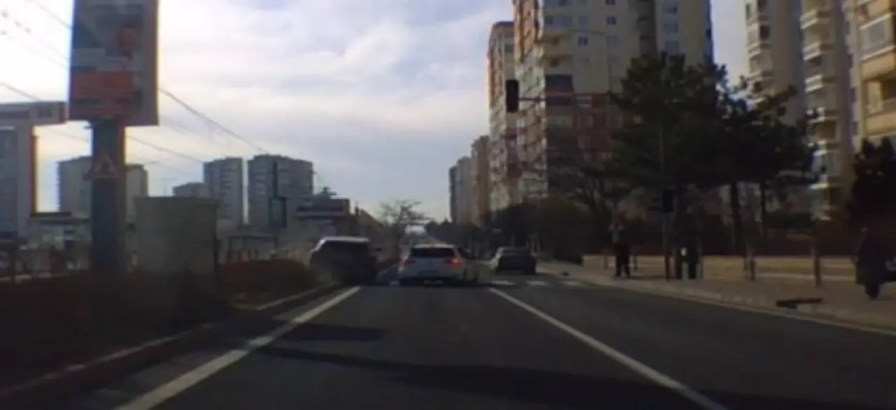 Olay anına ait görüntüler bir yol kamerasına yansıdı. Araçların hızlı şekilde ilerlediği ve refüje çıktığı görüldü.
