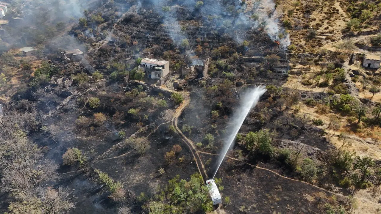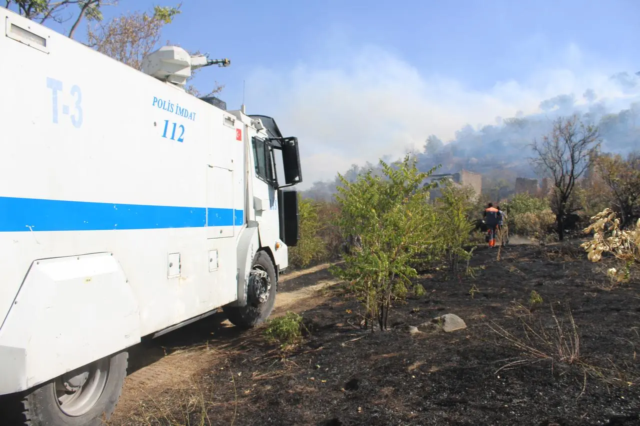 TOMA araçları da yangını söndürme çalışmalarına destek verdi. Ekipler, alevlerin yakındaki villalara ulaşmasını engellemek için mücadele etti.