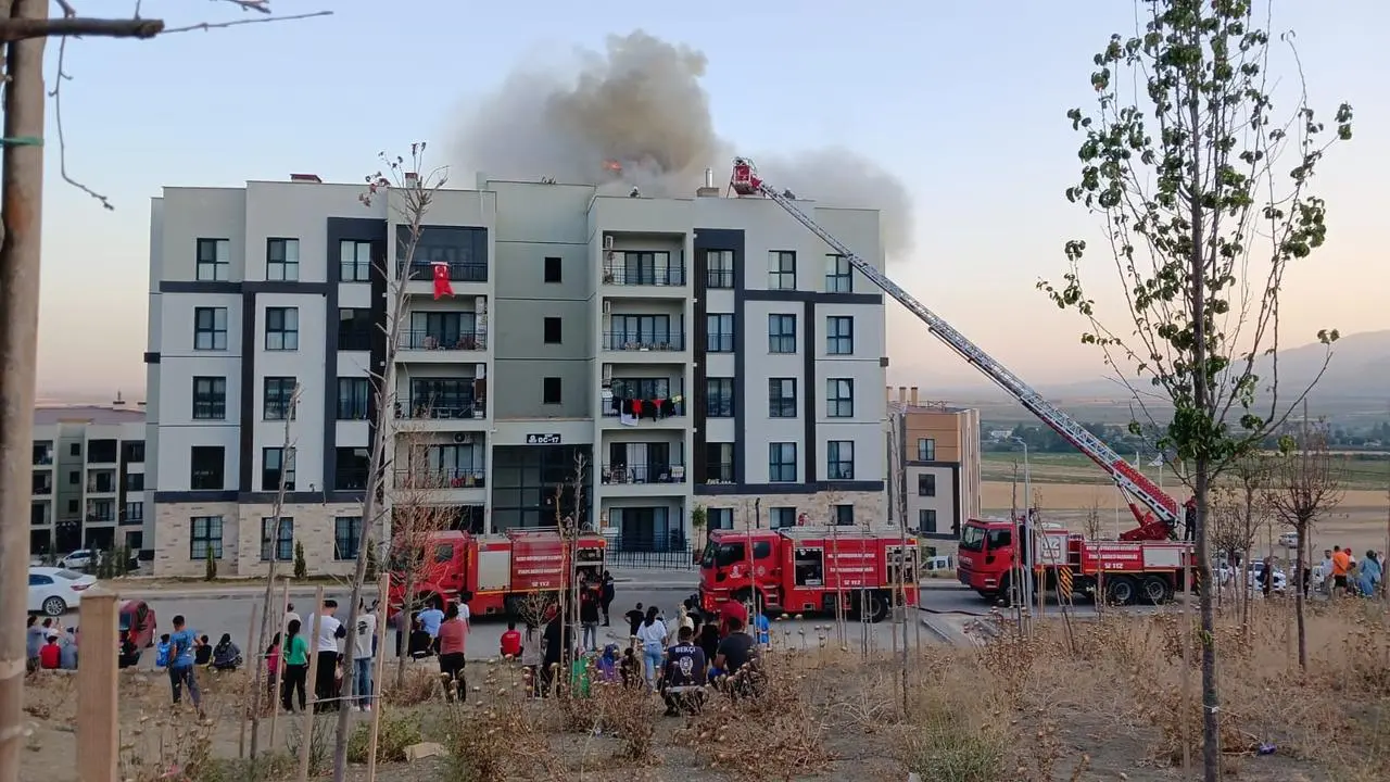 Özyörük Mahallesi'ndeki apartmanın çatısından alevler yükselmeye başladı. Mahalle sakinleri durumu fark ederek hemen yetkililere haber verdi.