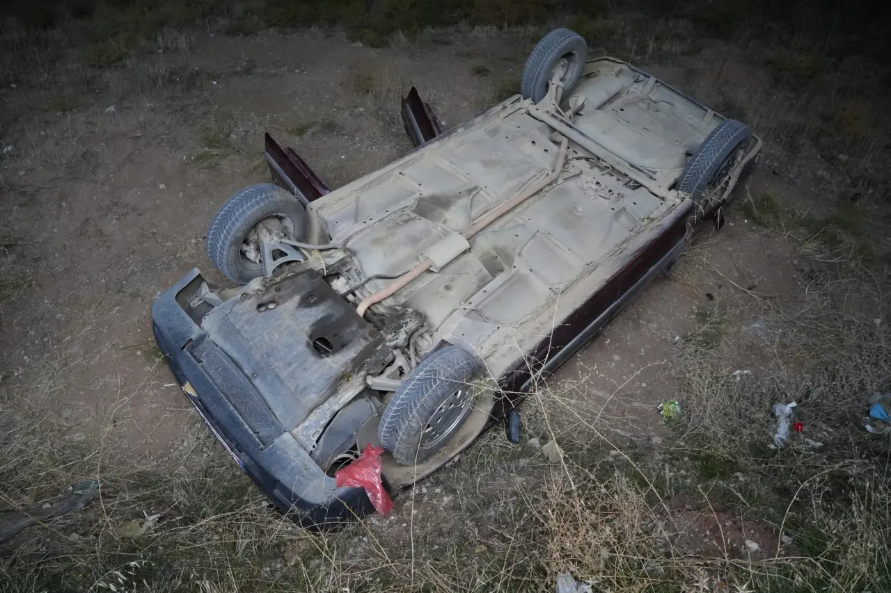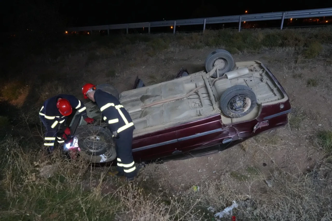 Kırıkkale'de gece saatlerinde meydana gelen trafik kazasında otomobil takla atarak şarampole devrildi.