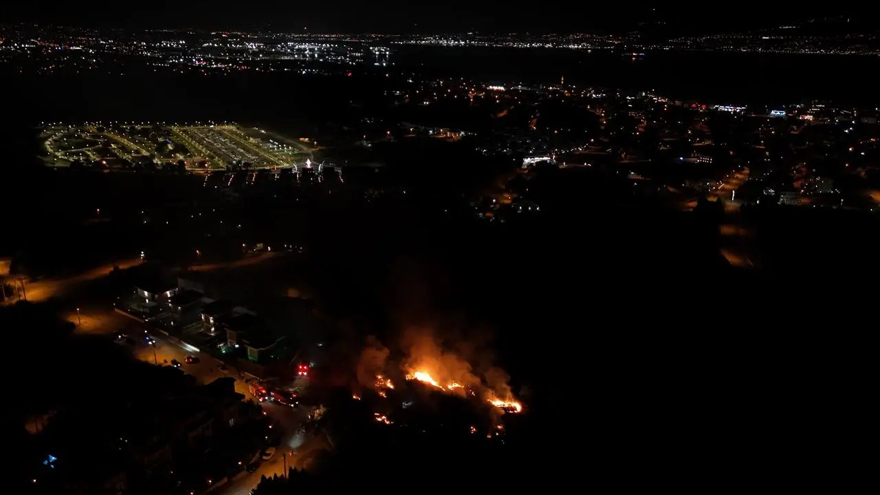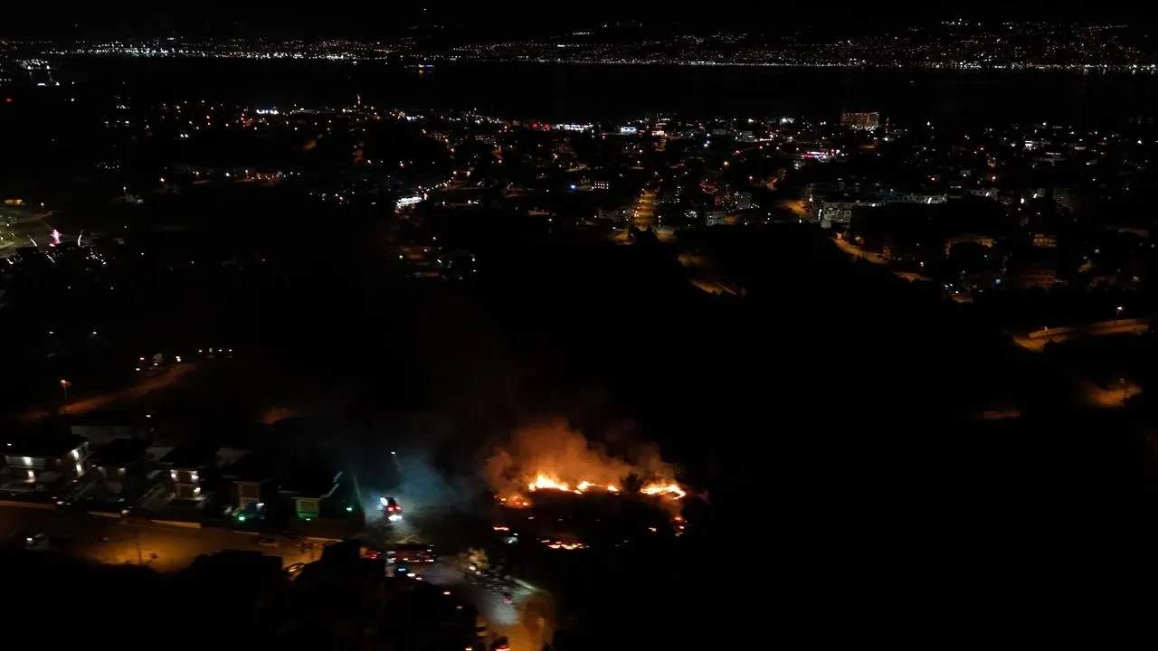 Kocaeli'nin Başiskele ilçesinde çalılık alanda çıkan yangın geceyi aydınlattı ve ekipler tarafından kontrol altına alındı.