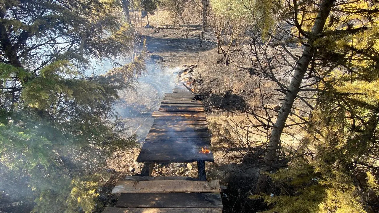 Beş futbol sahası büyüklüğünde alan zarar gördü. Soğutma çalışmaları devam ederken, yangının çıkış nedeni araştırılıyor.