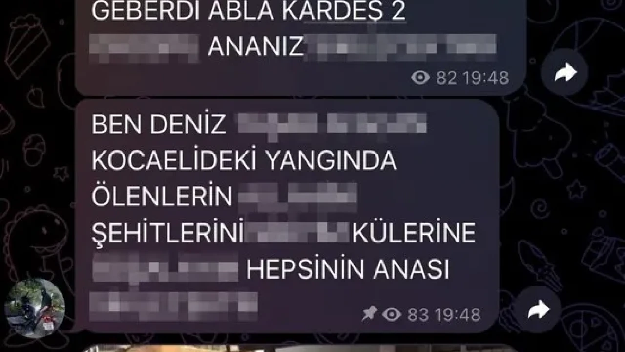 Telegram'da "Kocaeli İnfaz Yayın" hesabı üzerinden yapılan küfürlü paylaşımlar toplumun tepkisini çekti. Paylaşımlarda şehitlere ve devlete yönelik hakaretler de yer aldı.