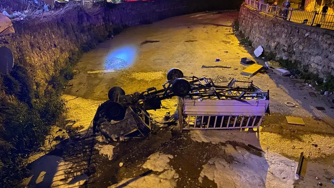 Olay, gece saat 22.00 sıralarında Ağadere Caddesi Yosun Sokak'ta meydana geldi. Freni boşalan kamyonet, kontrolden çıkarak dere yatağına düştü.
