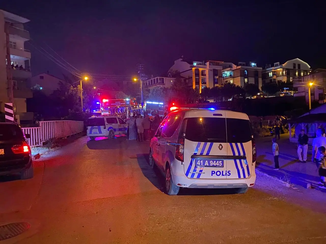 Kocaeli'nin Körfez ilçesinde park halindeyken freni boşalan kamyonet, dere yatağına düşerek alev aldı.