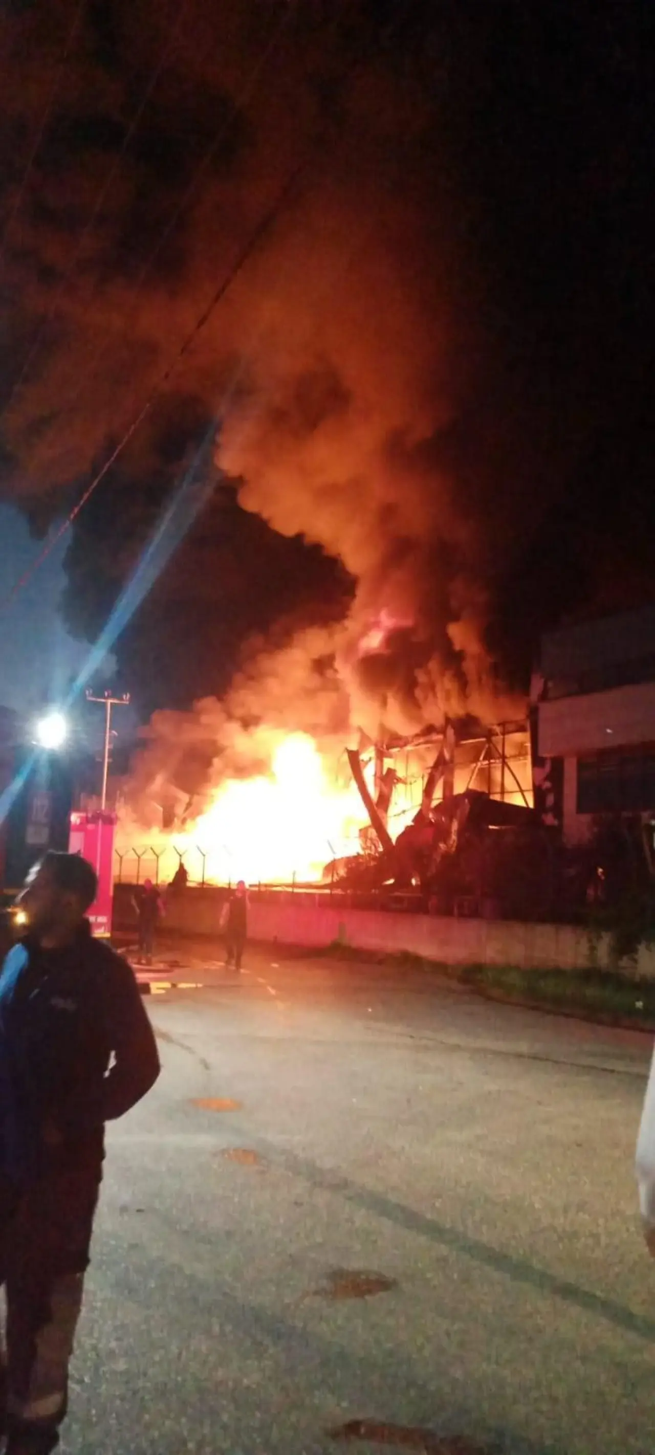 Kocaeli'nin Başiskele ilçesinde bir lojistik firmasına ait depoda yangın çıktı, alevler geceyi aydınlattı.