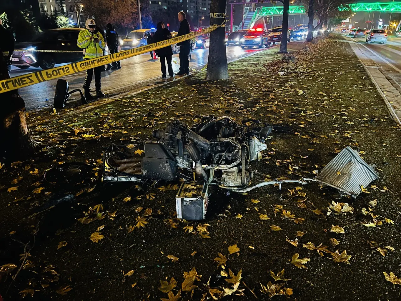 Konya'da direksiyon hakimiyetini kaybeden otomobil refüjdeki ağaca çarparak alev aldı, 1'i ağır 2 yaralı.