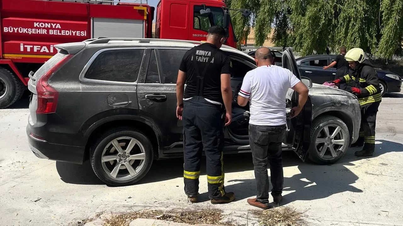 Konya'nın Kulu ilçesinde seyir halindeki cipte yangın paniği yaşandı, sürücü dinlenme tesisine sığındı.