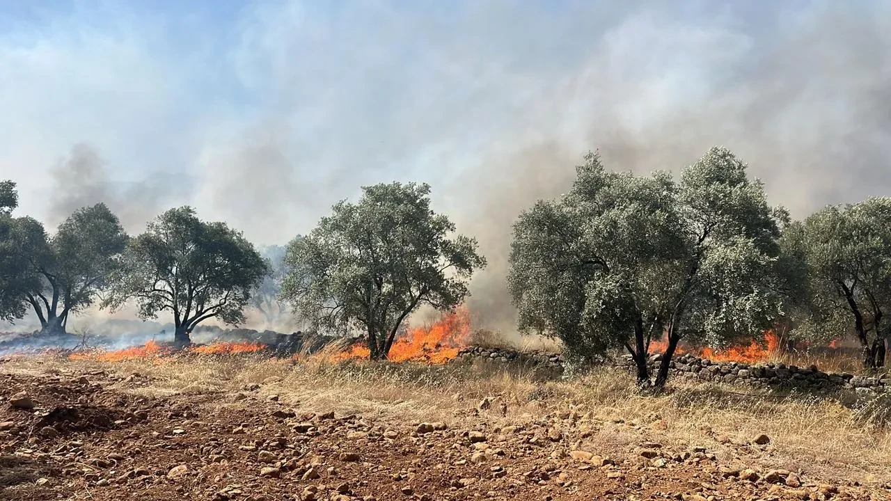 Zeytinlik alanda başlayan yangının çıkış nedeni henüz belirlenemedi. Yetkililer olay yerinde detaylı inceleme başlattı.
