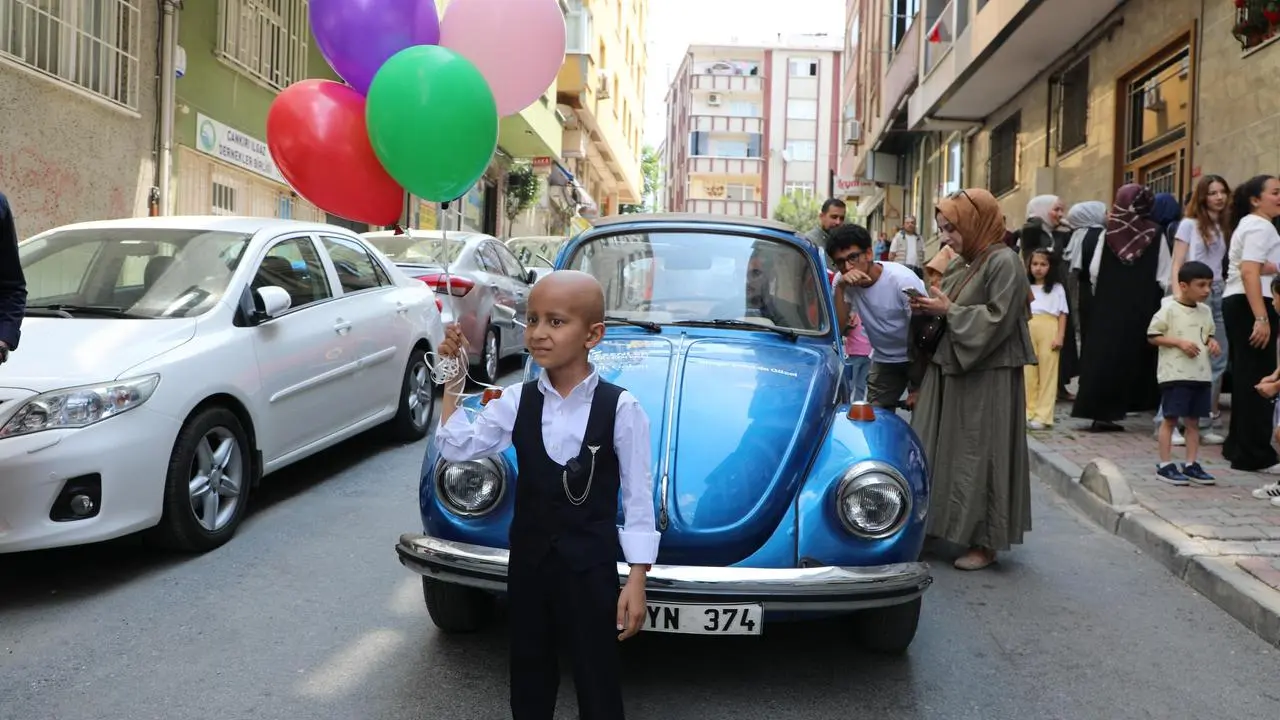 Galatasaray taraftarı olan küçük Selim için nostaljik araçlarla konvoy oluşturuldu. Etkinlikte marşlar eşliğinde keyifli bir gezinti yapıldı.