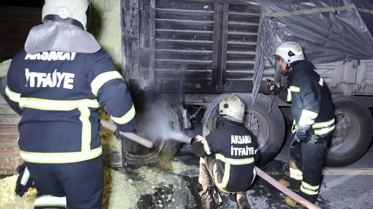 Aksaray-Ankara Karayolu'nun 25. kilometresinde tehlikeli anlar yaşandı. Tırın patlayan lastiği, jantın asfaltla sürtünmesi sonucu alev aldı.