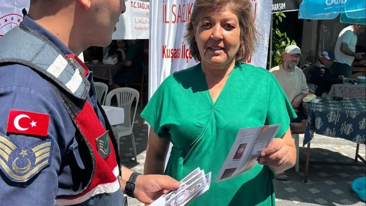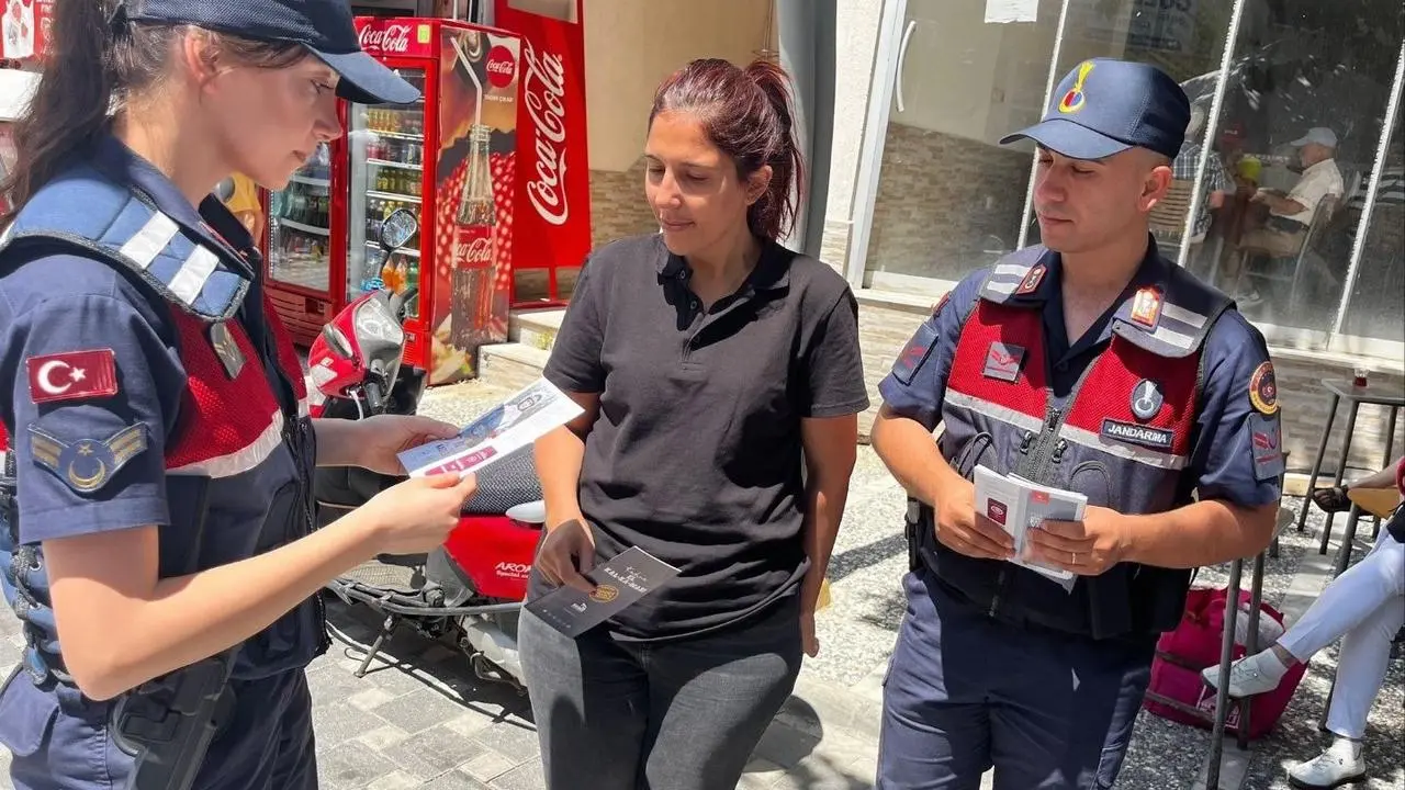 Aydın'ın Kuşadası ilçesinde jandarma ekipleri teşkilatı tanıtarak KADES uygulaması hakkında vatandaşları bilgilendirdi.