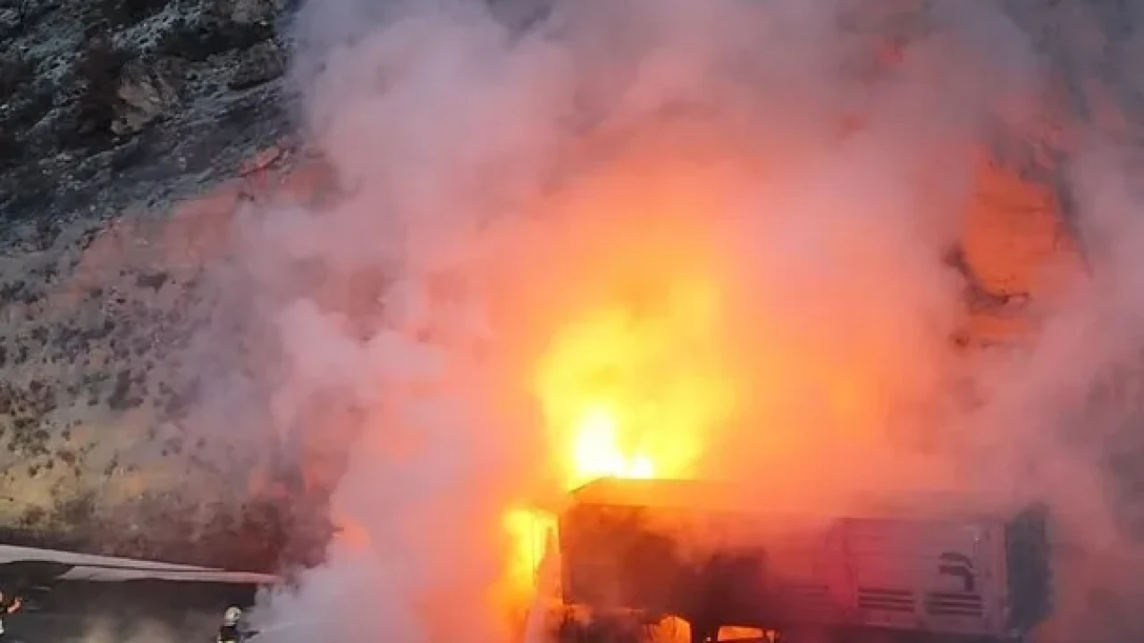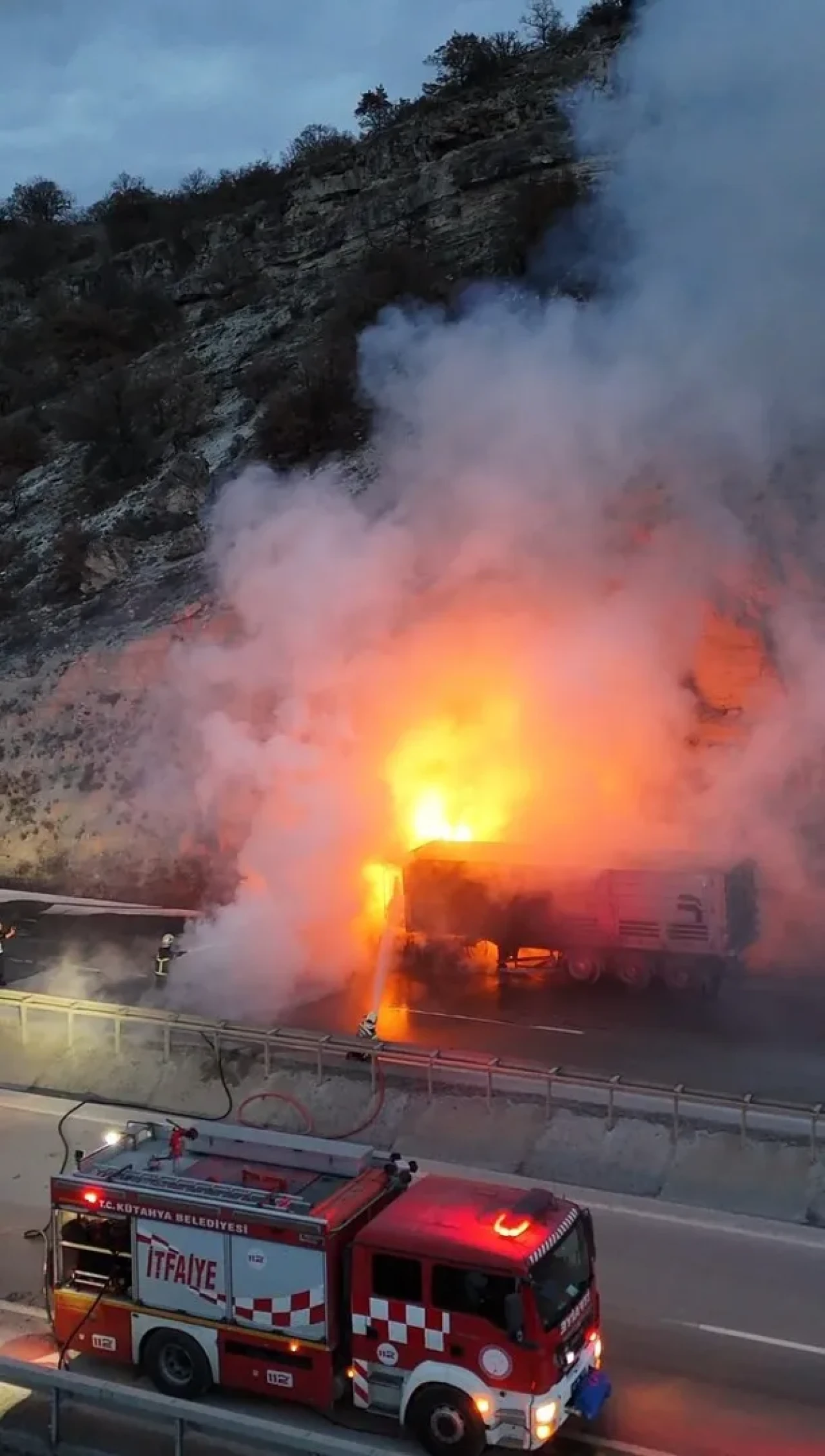 Kütahya'da seyir halindeki tır aniden alev aldı, itfaiye ekipleri hızla müdahale ederek yangını kontrol altına aldı.