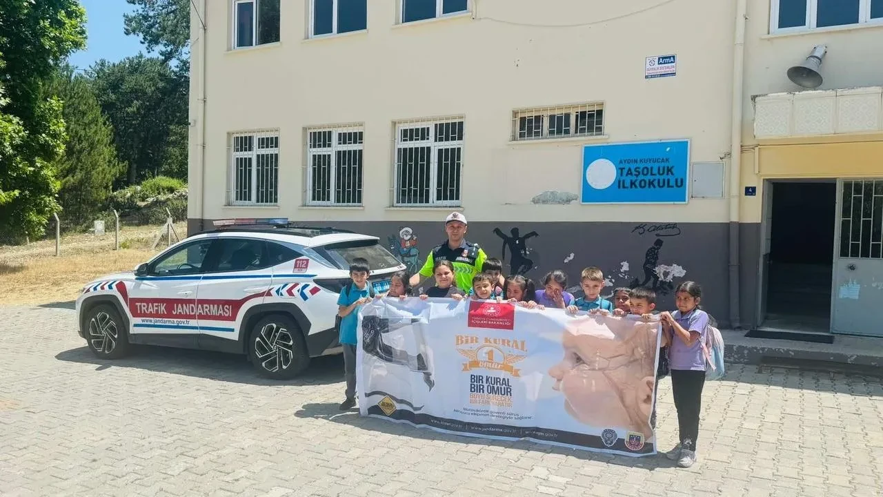 Aydın'ın Kuyucak ilçesindeki Taşoluk İlkokulu öğrencilerine jandarma ekipleri tarafından kapsamlı trafik eğitimi verildi.