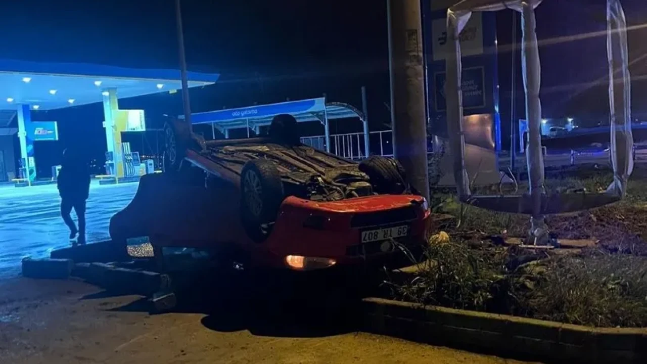 39 TR 807 plakalı otomobil sürücüsünün kontrolünden çıkarak karşı şeride geçti. Araç ters döndükten sonra kapalı bir akaryakıt istasyonunun yanında durdu.