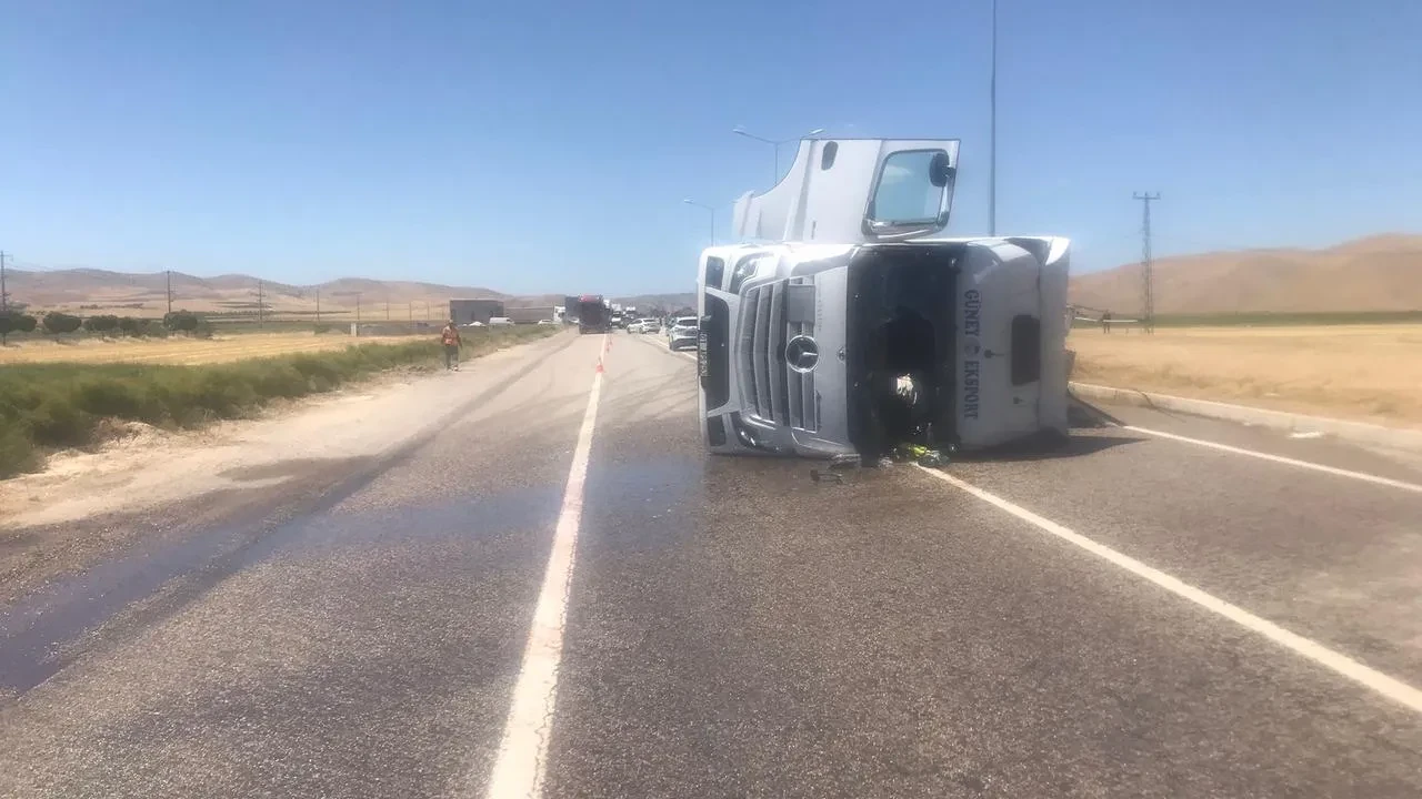 Malatya'nın Yazıhan ilçesinde seyir halindeki tankerin devrilmesi sonucu bir kişi yaralandı, yol geçici süre kapatıldı.