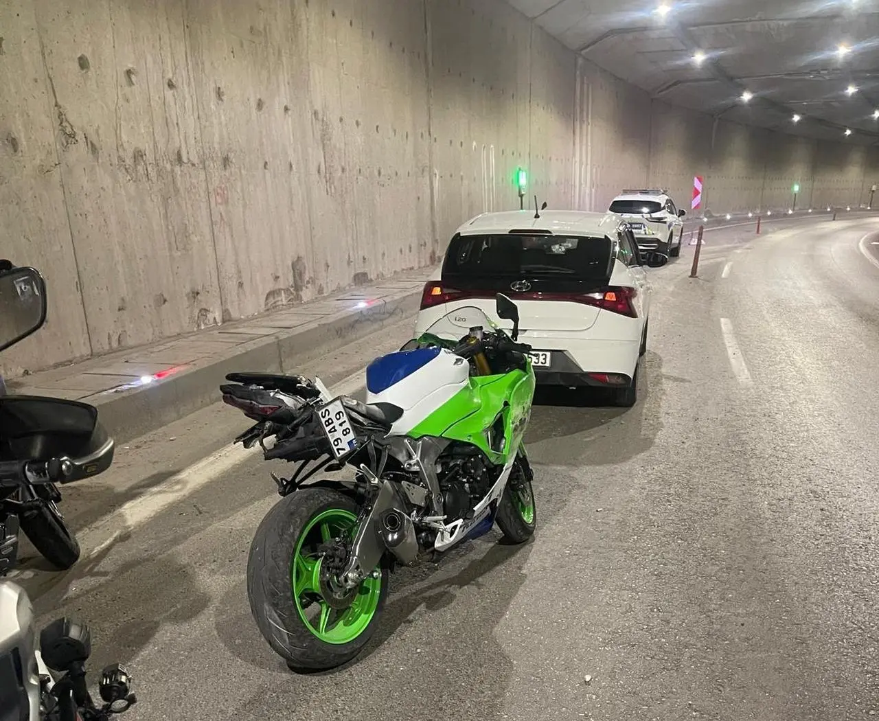 Erkenek Tüneli'nde meydana gelen ilk kazada motosiklet sürücüsü direksiyon hakimiyetini kaybetti. Kaza sonucu sürücü yaralandı ve olay yerinde ilk müdahale yapıldı.