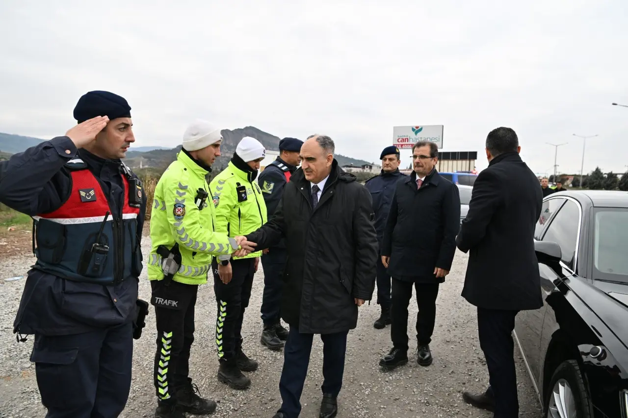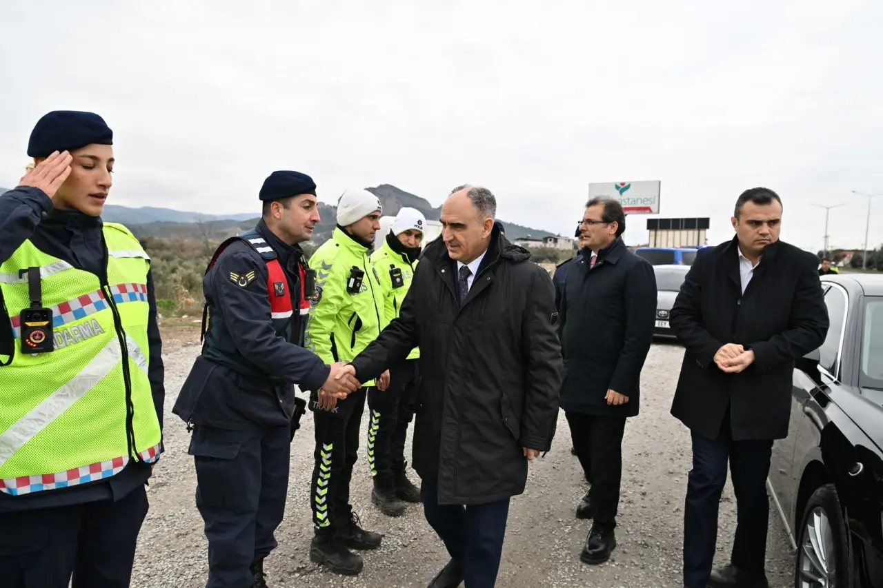 Vali Özkan, İzmir-Ankara D300 Karayolu'ndaki uygulama noktasında incelemelerde bulundu. Salihli Kaymakamı Ali Güldoğan ve ilçe güvenlik yetkililerinden bilgi aldı.