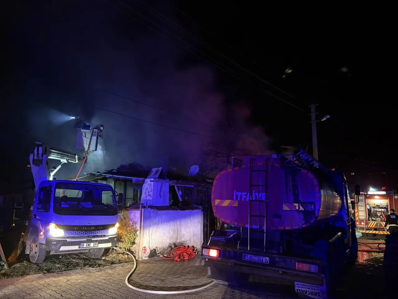 Yangın, Bey Mahallesi'ndeki tek katlı müstakil evde gece saatlerinde başladı. Alevler kısa sürede komşu eve sıçrayarak hasara yol açtı.