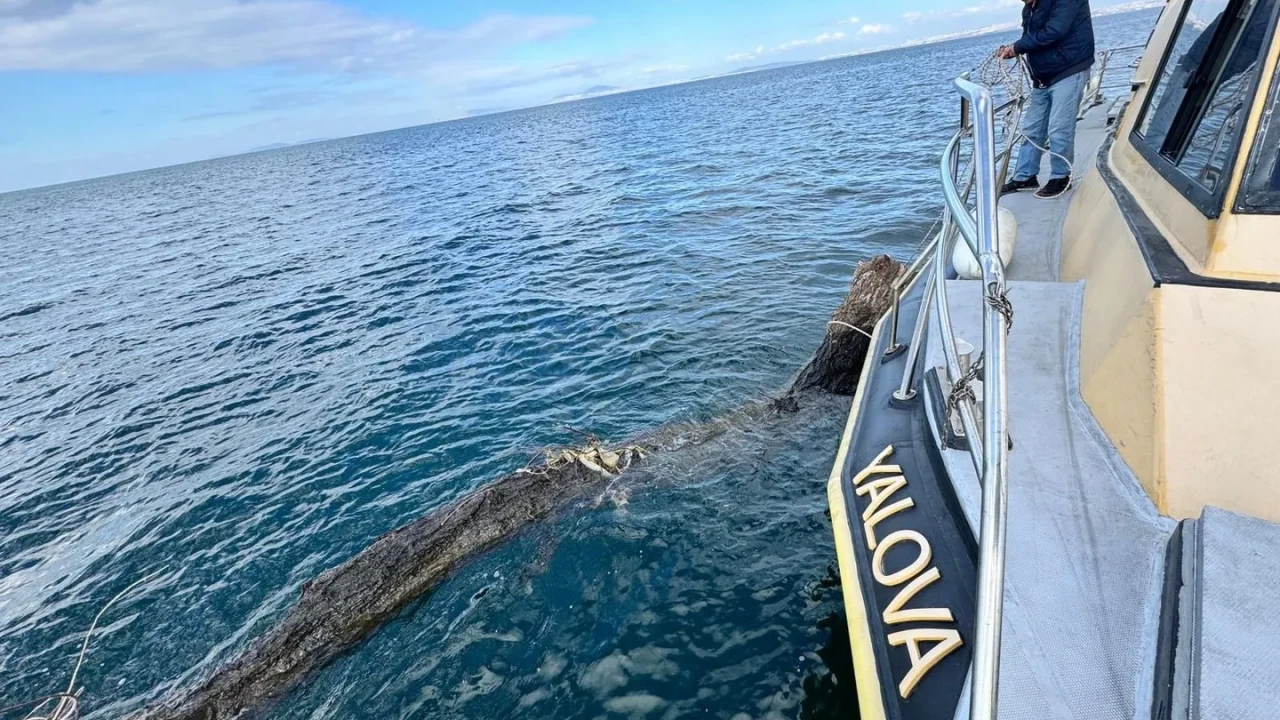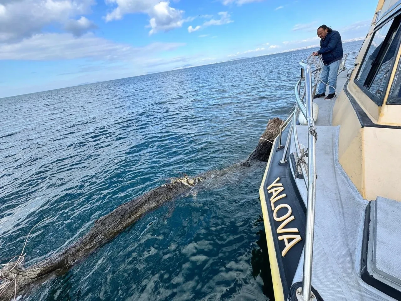 Yalova İl Tarım ve Orman Müdürlüğü ekipleri, denizde yüzen büyük bir ağaç tespit etti. Bu ağaç, İstanbul-Yalova feribot güzergâhında tehlike oluşturuyordu.