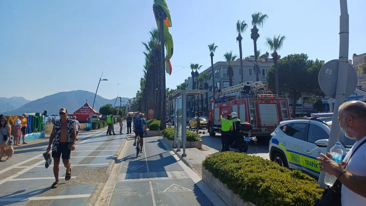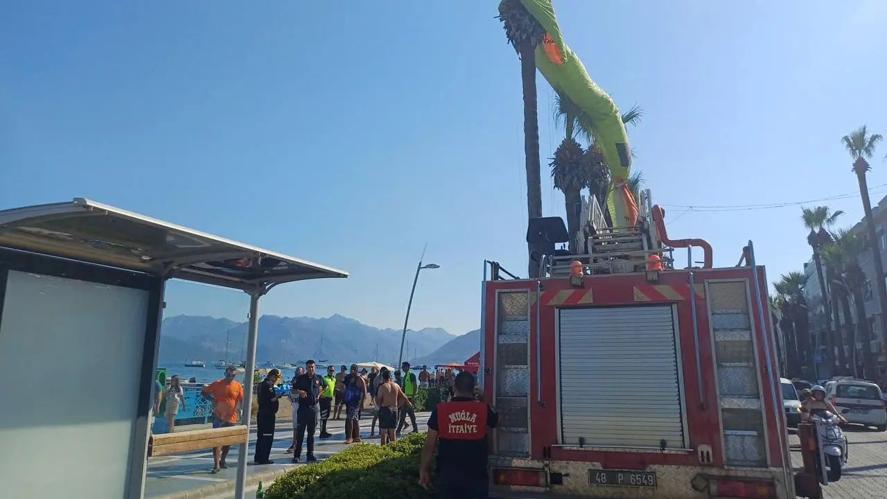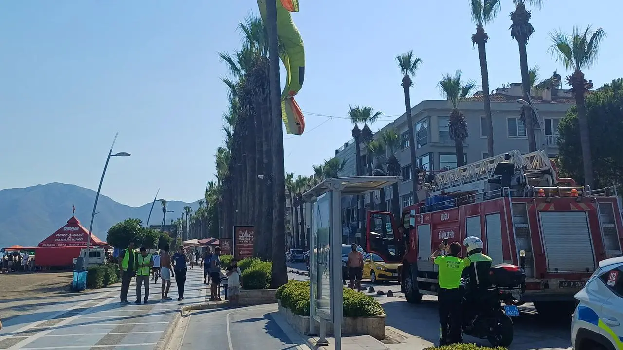 Muğla'nın Marmaris ilçesinde deniz paraşütü palmiye ağacına takıldı, iki kişi kurtarıldı.