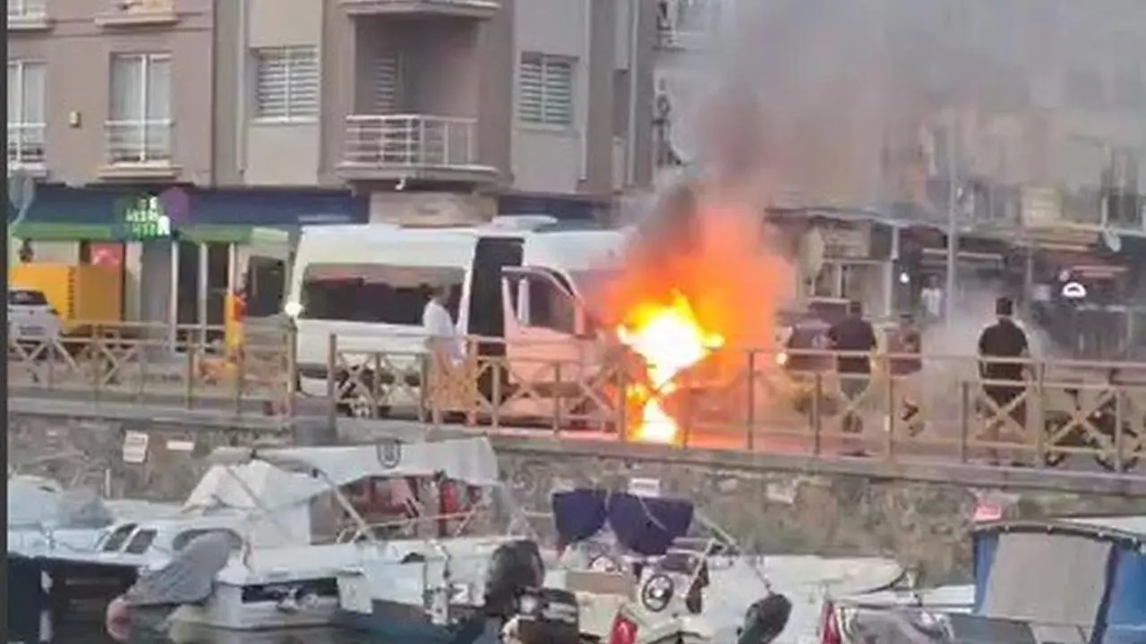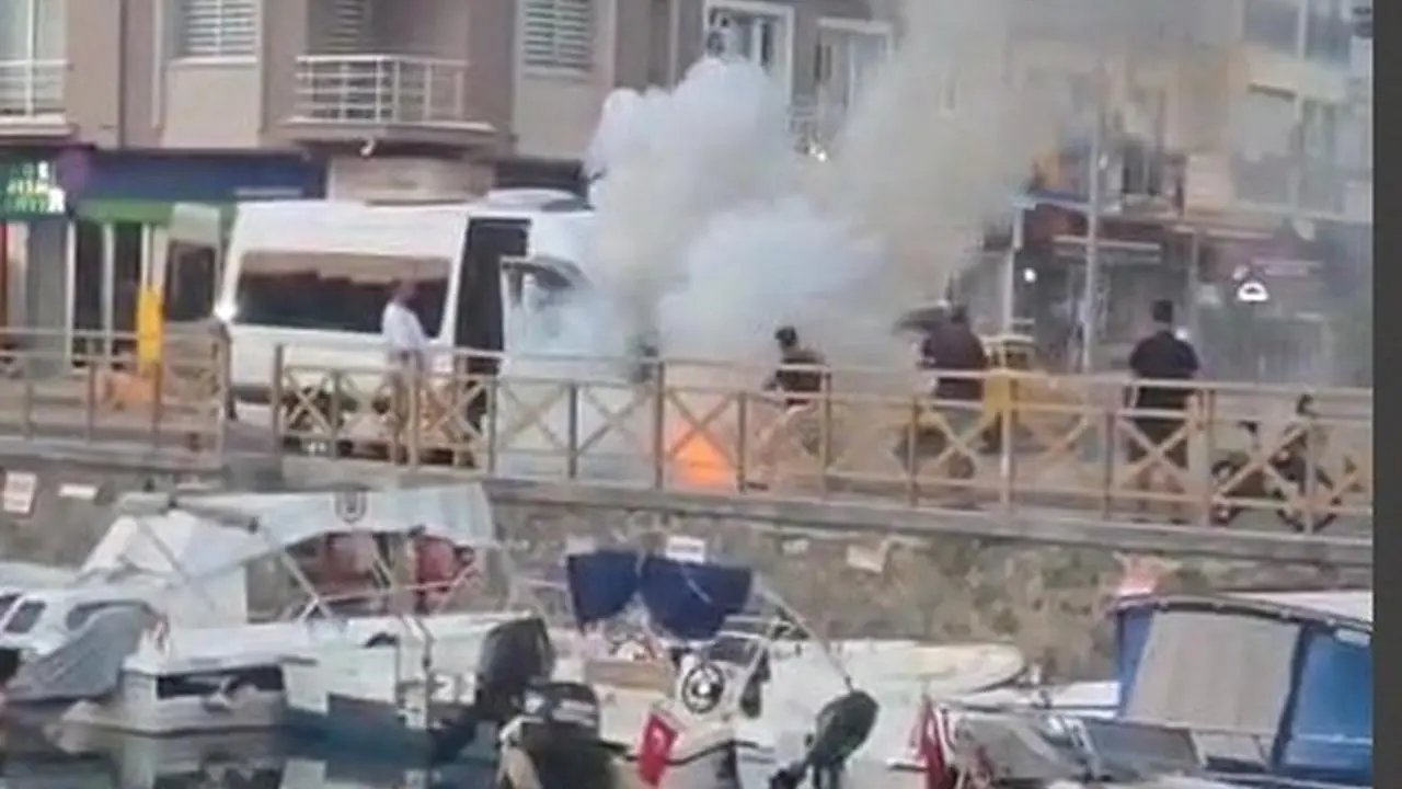 Olay akşam saatlerinde turistik bölgede gerçekleşti. Minibüsün motor bölümünden aniden alevler yükselmeye başladı.