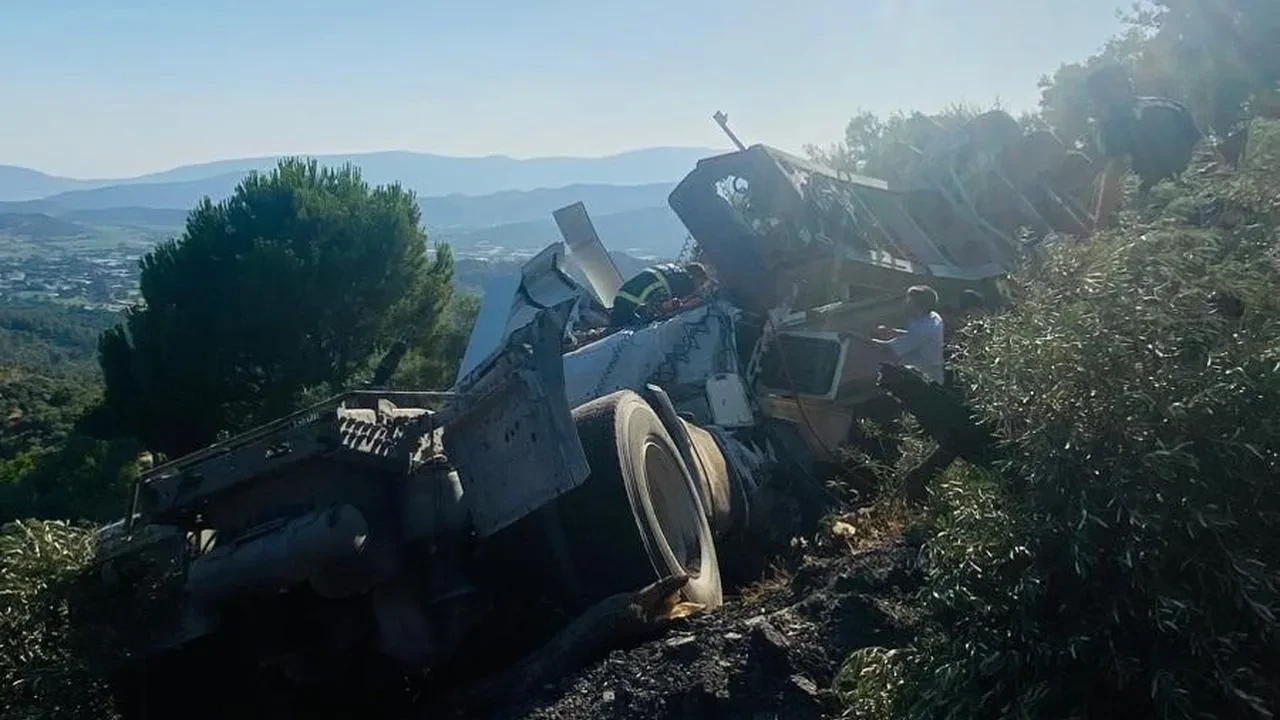 Muğla'nın Milas ilçesi Labranda yolunda freni patlayan tır şarampole devrildi, sürücü ağır yaralandı.