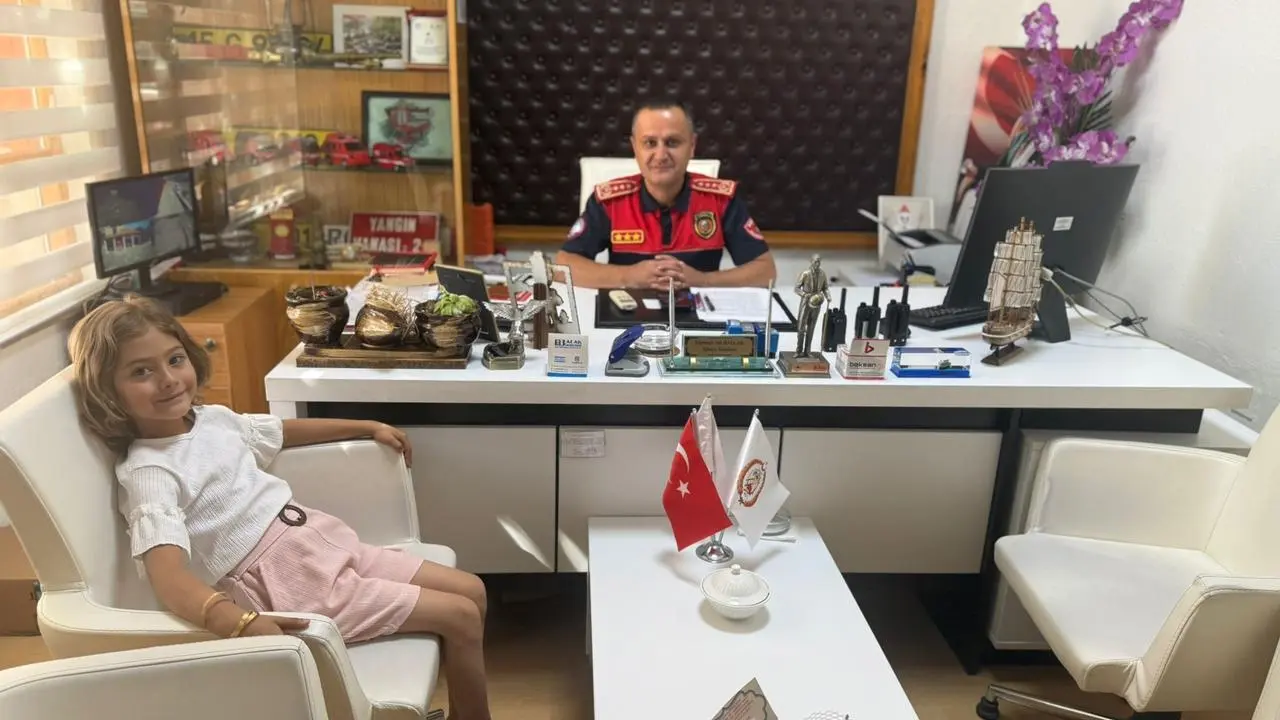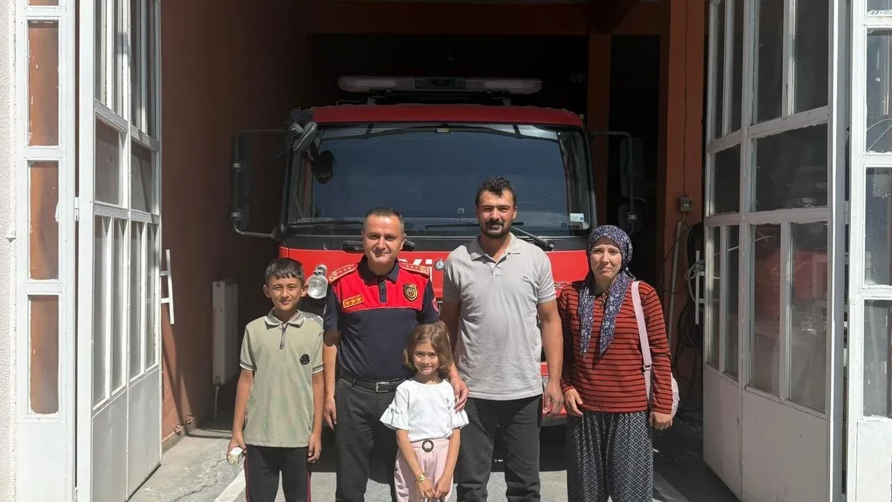 Belediye İtfaiye Müdürlüğü, Aslı'ya tablet ve eğitim seti hediye etti. Minik kahraman, arkadaşlarına yangın durumunda 112'yi aramalarını öğütledi.