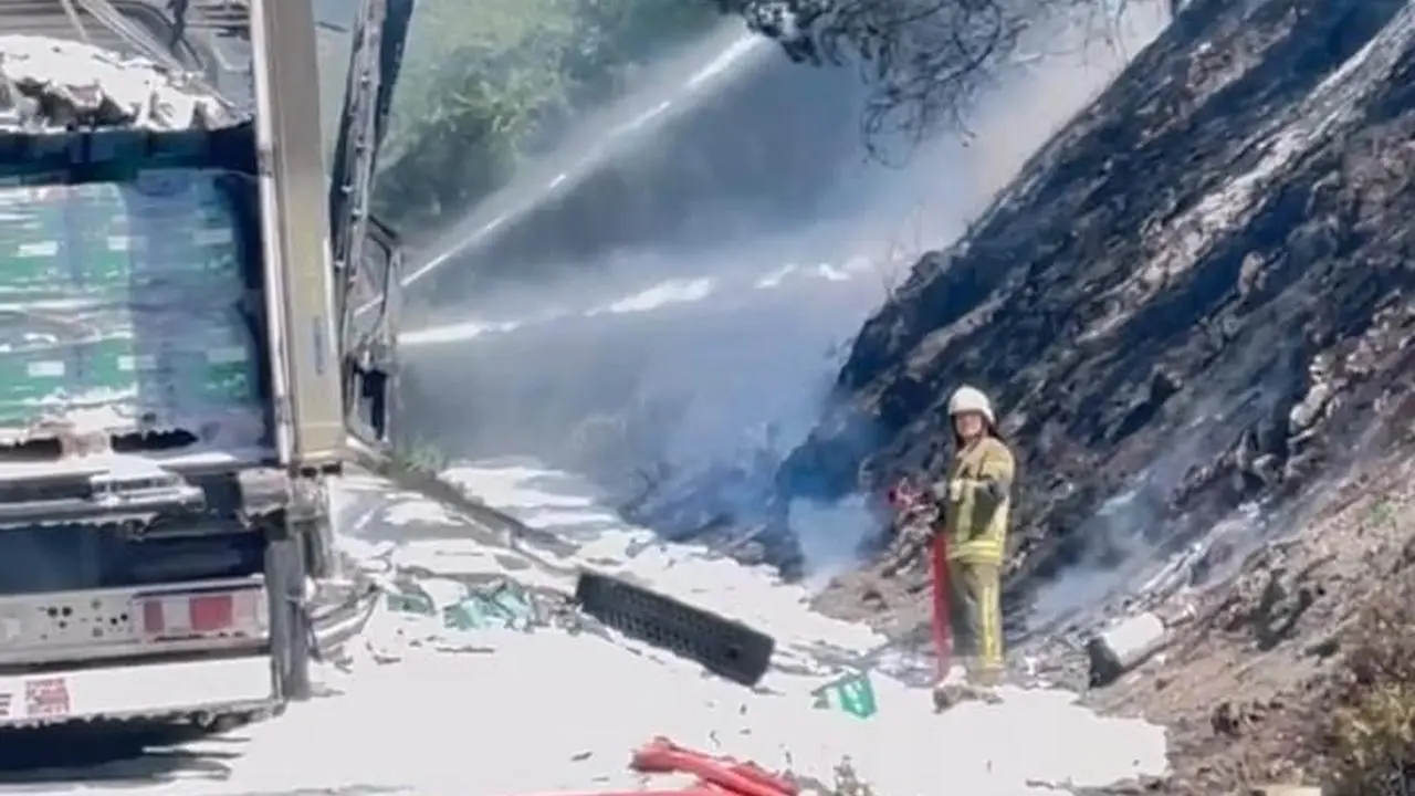 Tırdaki alevler kısa sürede çevredeki ormanlık alana yayıldı. Olay yerine çok sayıda itfaiye ekibi sevk edildi.