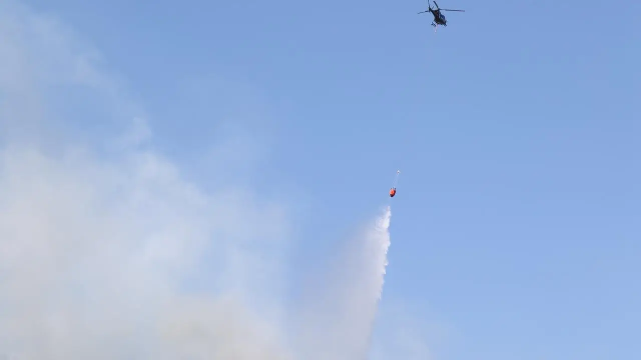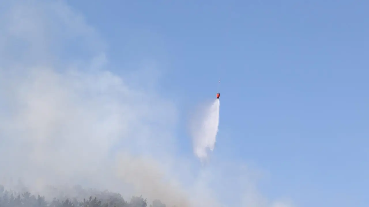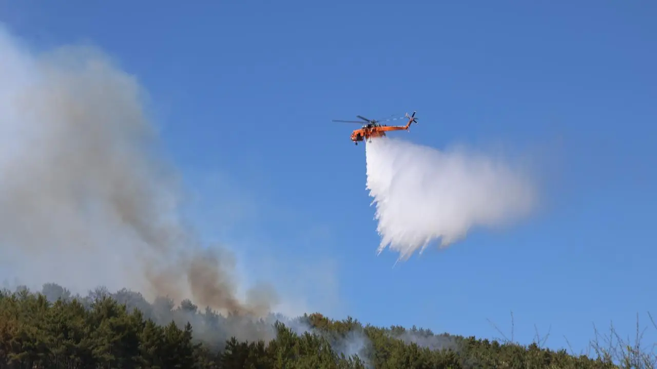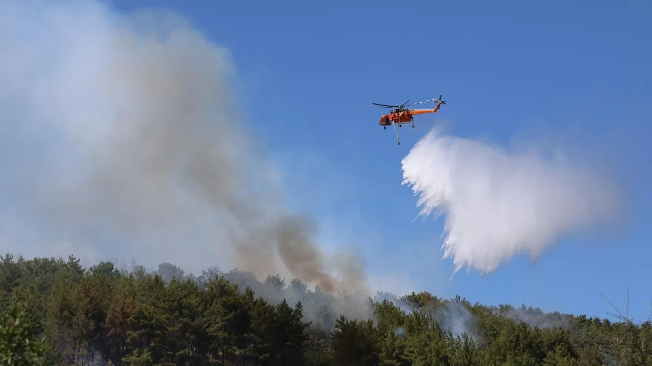 Yangına 4 helikopter havadan müdahale gerçekleştiriyor. Arazözler de karadan söndürme çalışmalarını sürdürüyor.